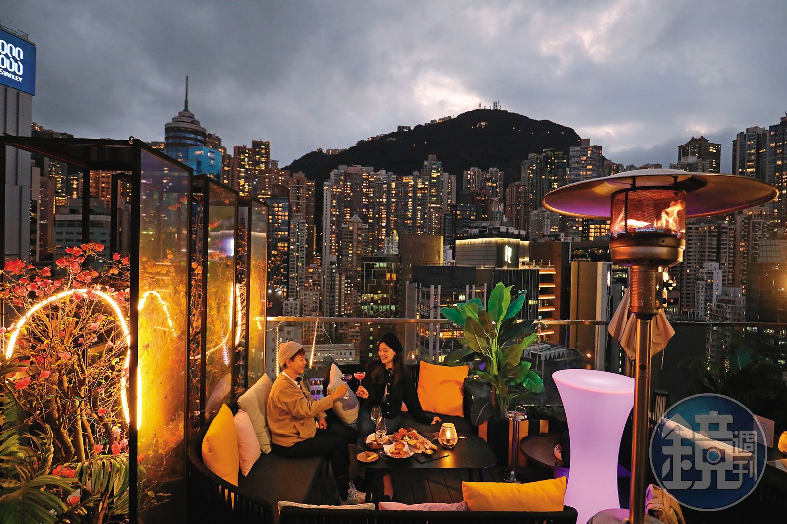 深受歡迎的和牛三明治「Wagyu Sando」就是許多酒客來此必點的小食,再點份匯集多種生火腿、臘腸與起司的「Charcuterie And Cheese Mix Platter」拼盤,悠閒啜飲調酒或來自法國各地的佳釀,伴隨微醺的心情,這時我想不到世界上還有哪一個地方的月色及夜景能比香港更令人心醉。