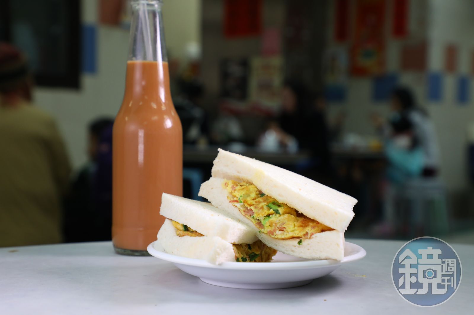 瑞記的「蛋牛治」是將碎牛肉加入青蔥、雞蛋,煎到微帶焦黃,包夾在沒烤過的兩片白吐司中,我咬了一口,調味清淡得讓我驚訝,肉甜蛋嫩,帶點蔥香,完全是家常媽媽味,好吃得讓我回味至今,很想去買牛絞肉來複製。