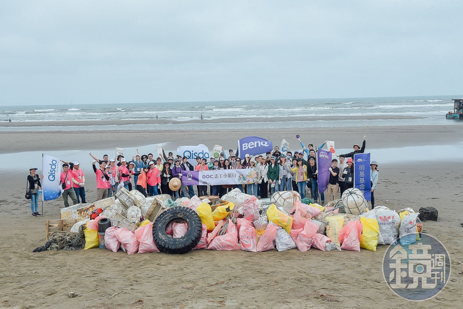 明基基金會執行長陳哲妮表示,春日3月再度帶領明基、佳世達志工前往苑裡海岸淨灘,沿岸因「突堤效應」沙害嚴重,海岸深處長年堆積巨量大型垃圾,明基、佳世達志工與在地團體「海線一家親環保協會」聯手分工,從海灘深處清運出漁網、輪胎、保麗龍等大型廢棄物,合力抬運沉重的廢棄物步行越過堤防,並採人龍接力隊型,拉出長長隊伍,將裝滿垃圾的飼料袋、廢棄物清運上岸,一個上午清運出79件大型漁業廢棄物、總計238.7公斤的海洋垃圾。
