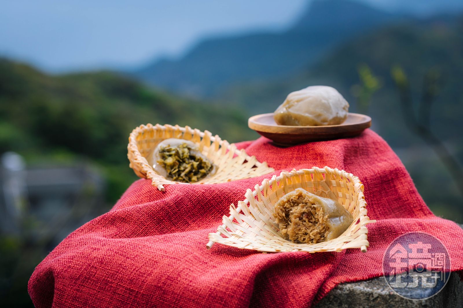 多虧時代進步,如今製粿過程中的磨米、瀝乾到攪拌,都能仰賴機器,省去大半功夫,唯獨「揉粿」步驟絕不能省,剛蒸出來熱騰騰的糯米糰,需要靠人工搓揉擠壓,將多餘空氣與水分排出,待冷卻後才能做到真正Q彈。採訪那日我大口吃著手中的粿,外皮黏手不黏牙,咬下會回彈,鹹甜口味超難抉擇,乾脆一次下肚,望著遠處山景,九份春遊無限好。