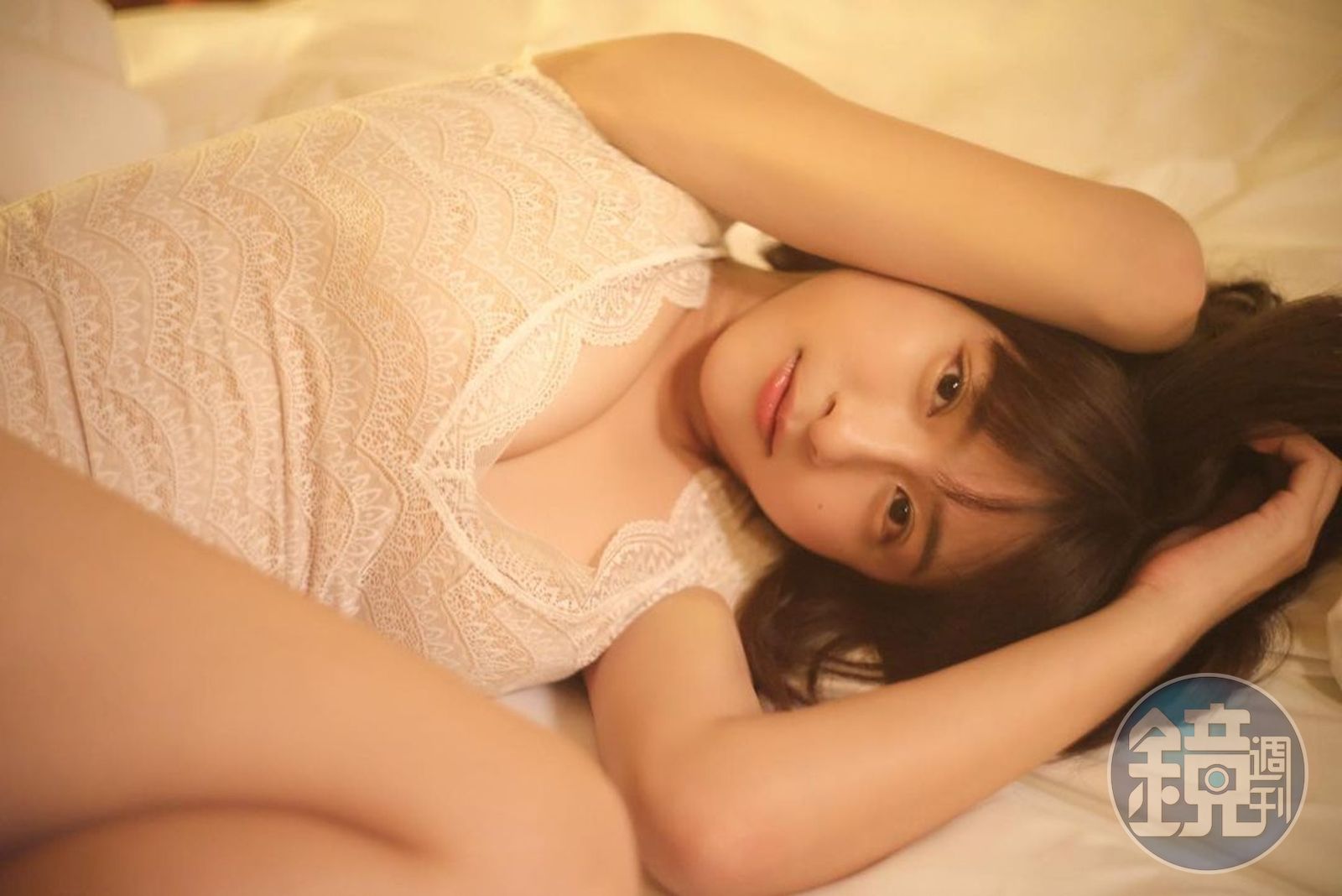 人氣女神峮峮在18日突然在社群公開一張若隱若現撩人照,並拍攝影片,以流利的日文宣布將在日本上架去年發售的寫真集《QUNing》,照片中她側躺在床上,身穿白色蕾絲睡衣,胸口深U領口隱約透出乳溝,引人遐想。