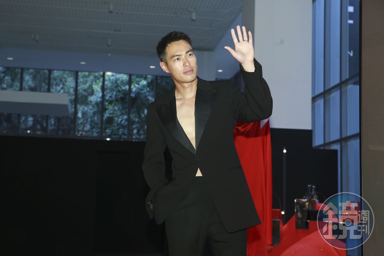 對於自己的性感著裝,楊祐寧說:「覺得這套西裝很適合參加典禮,因為剪裁很修身、加上有著硬挺的材質,會讓人更有氣勢的感覺。」問他會穿這樣跟老婆約會嗎?他開玩笑表示「這樣太性感了」,是否有提前練一下身材?他幽默回應,「就算是前一天練也來不及了,可能上場前15分鐘前練一下吧」。