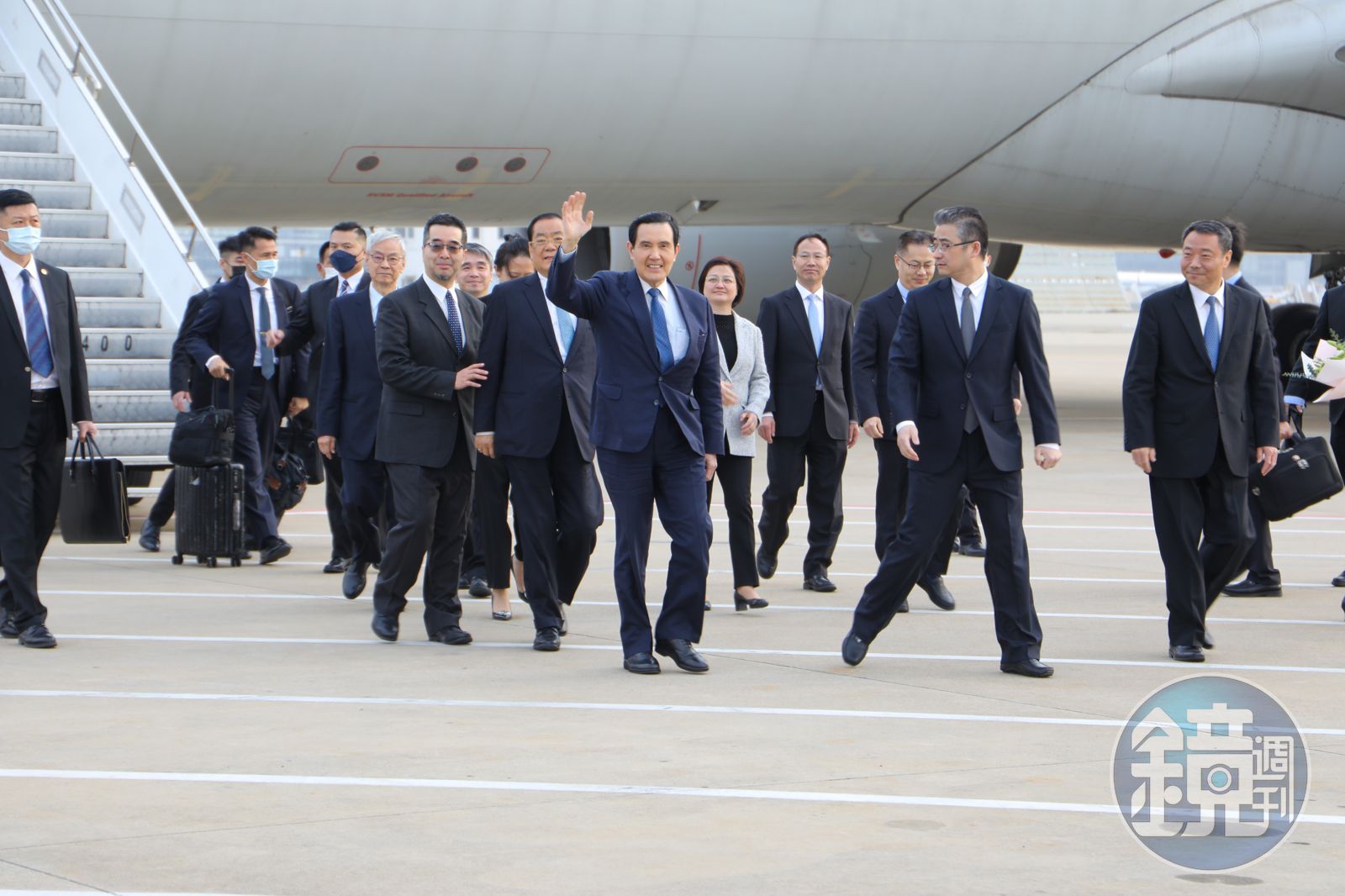馬英九的班機於今天下午16時21分降落上海浦東機場,一直到17時左右飛機艙門才打開。 馬英九步出艙門後,先是揮了揮手並走下階梯,與前來接機的國台辦副主任陳元豐等官員笑談握手;簡單寒暄之後,馬英九便搭上了接駁車離開機場,並未在現場接受記者的訪問。 馬英九此次訪中行程相當緊湊,將會造訪多個城市,包括南京、武漢、長沙、重慶、上海等地;除了回老家祭祖外,也安排多個青年交流活動。