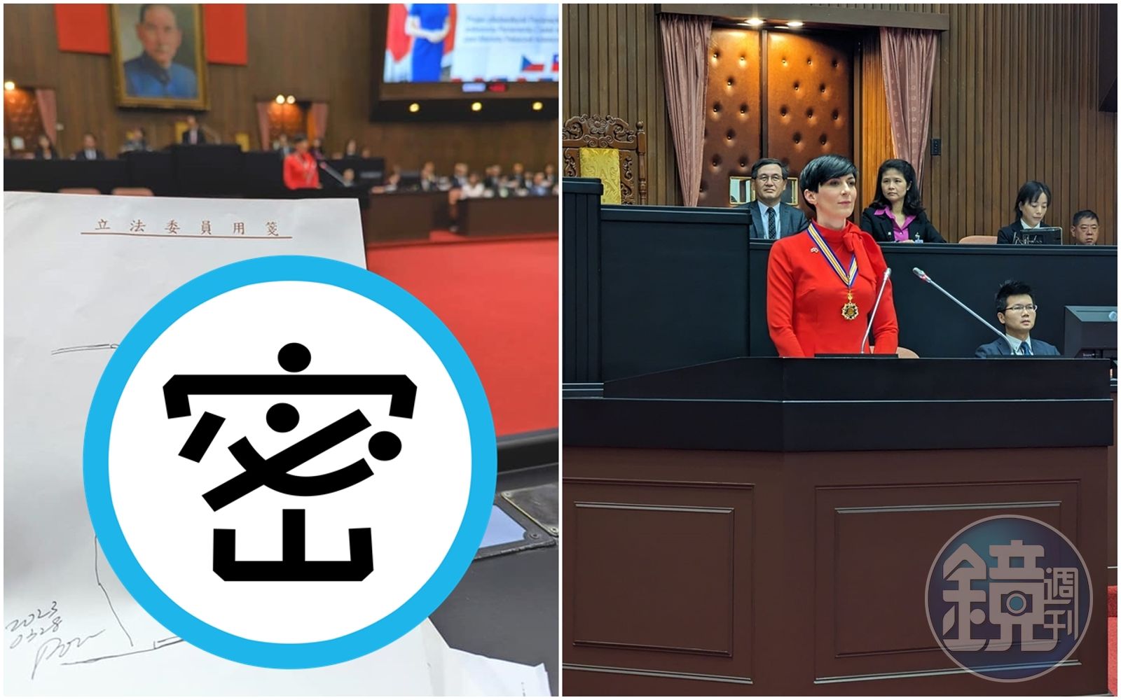 稍早,坐在台下的鄭運鵬於臉書po文,「歡迎捷克共和國艾達莫娃議長蒞臨立法院演講」,他炫耀稱自己坐在「海景第一排」,還曬出在台下偷畫的「課本塗鴉」作品,更附上一張艾達莫娃同角度的照片讓大家對比。