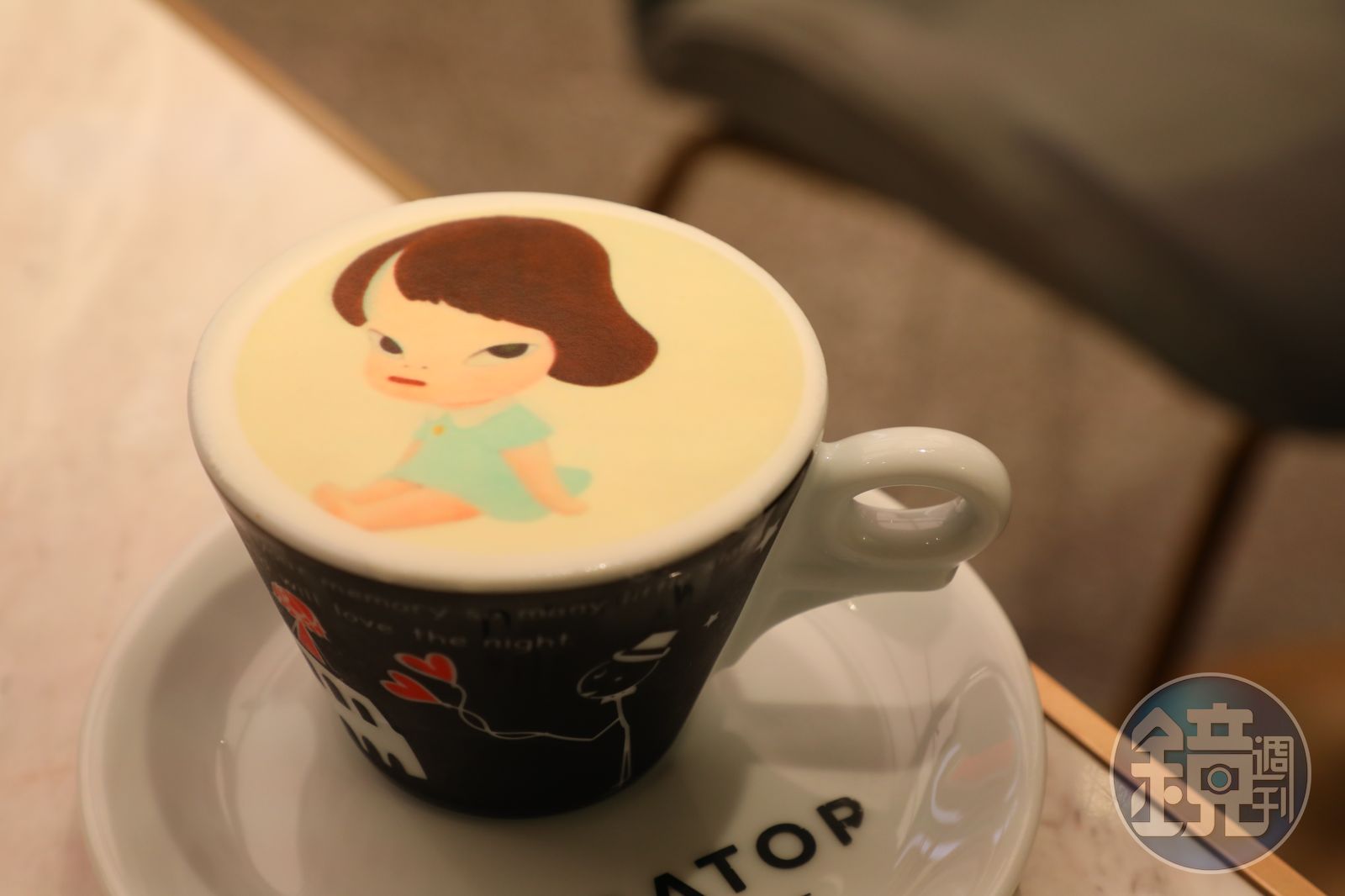 我選了日本當代藝術家奈良美智的作品,一個翻白眼的小女孩穩穩地坐在綿密細緻的奶泡上,越看越可愛,叫人根本捨不得破壞。這大概是第一次我點了一杯咖啡卻不記得它的味道,只顧著拍照和讚嘆了。