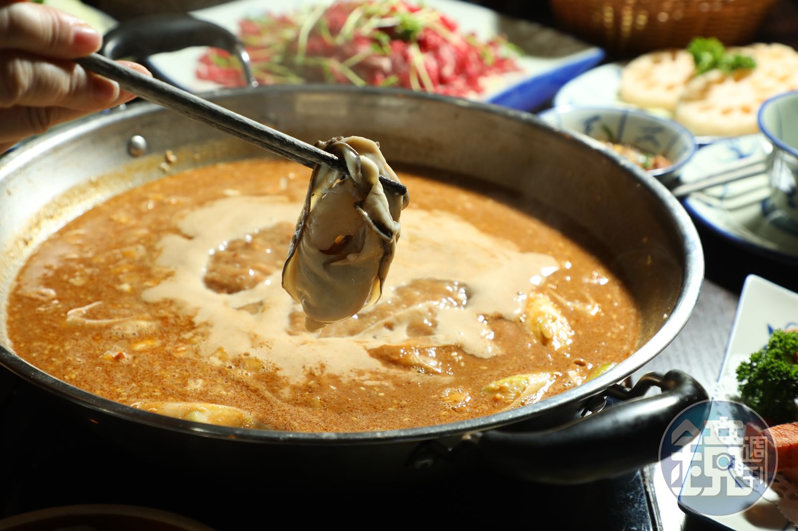 將「美國桶蠔」(港幣198元/份,約 NT$777)放入「老港沙嗲鍋」(港幣148元/份,約 NT$580)中,吸滿特濃湯汁後豪氣吃下肚。發布時間:2023.04.01 06:57 臺北時間