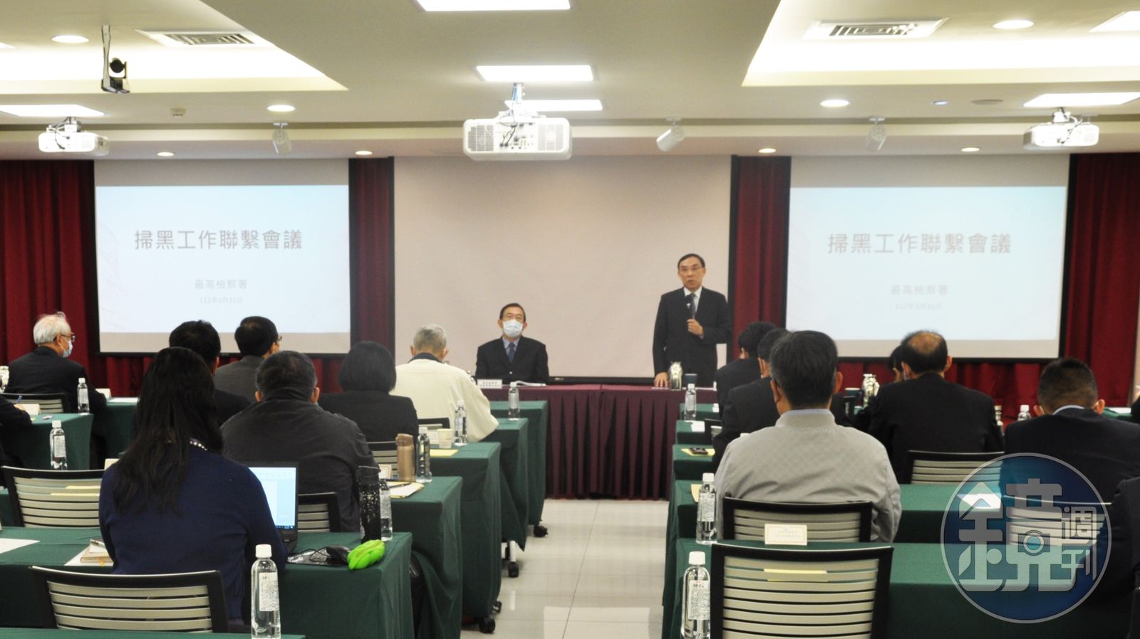 全國一、二審檢察長及調查局、廉政署首長,就掃黑案件盤點與調查交換意見,各地檢署檢察長分就轄內具有特色性之廣義掃黑案件進行盤點,並就偵查作為規劃、預期成效進行報告。