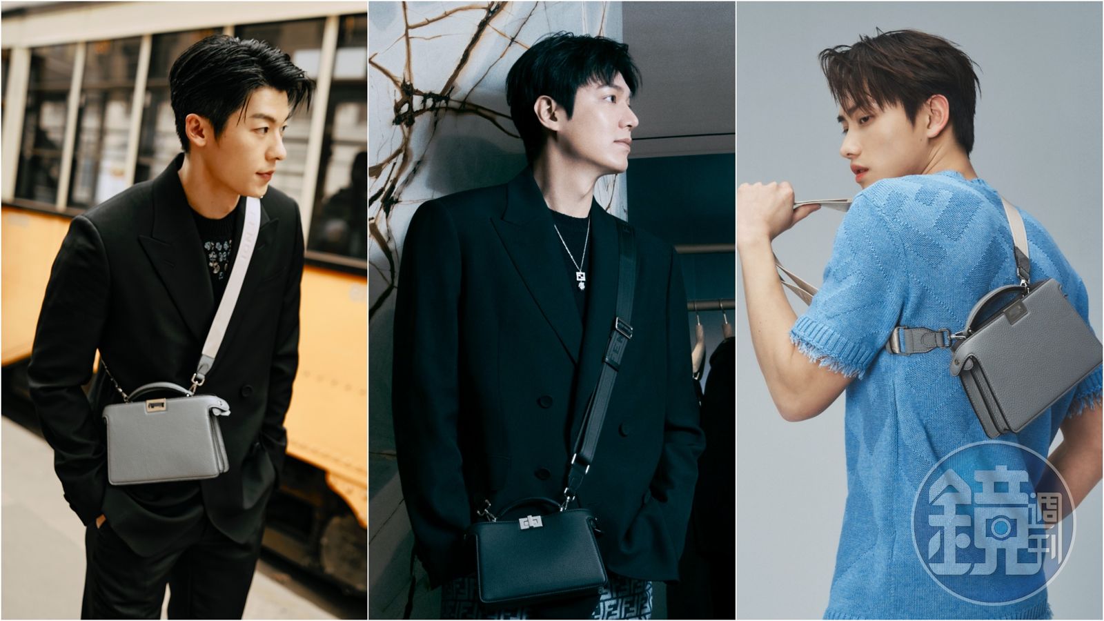 (左起)許光漢、李敏鎬、范少勳以不同的服裝風格演繹Peekaboo ISeeU XCross。(FENDI提供)發布時間:2023.04.02 18:03 臺北時間