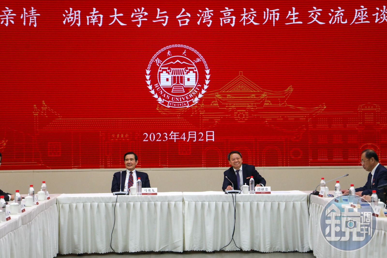 馬英九率到「大九學堂」的台灣學生參訪湖南大學,再到湖南廣電體驗節目錄影,還在現場高唱知名歌曲〈月亮代表我的心〉,引發關注。其中,他在湖南大學的交流座談會中致詞時提及,稱「我們國家」修改了憲法,把「我們國家」分了兩個部分,「一個是台灣地區,一個是大陸地區,都是我們中華民國,都是中國。」