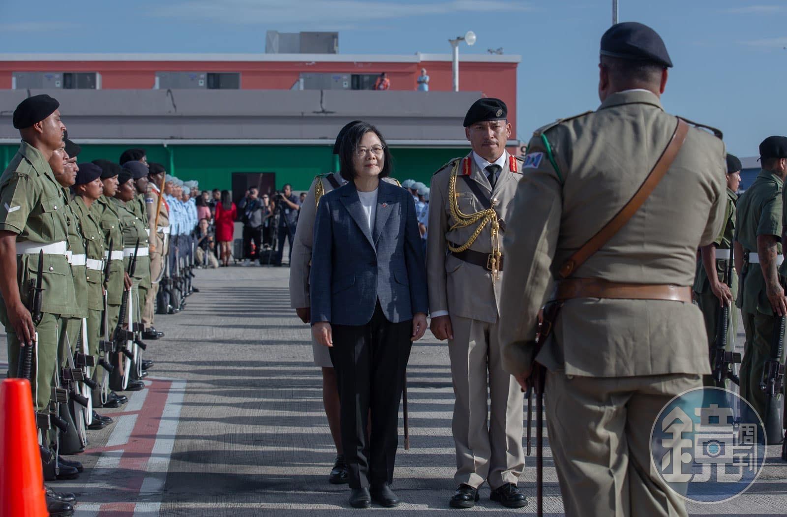 總統蔡英文率團出訪,近日飛抵中美洲友邦貝里斯,當地時間3日在首都貝爾默潘與貝里斯總理布里仙紐(John Briceño)進行雙邊會談後,來到貝里斯國會,該國朝野議員均親自歡迎,在參眾兩院議長陪同下進入議場,公開發表演說。