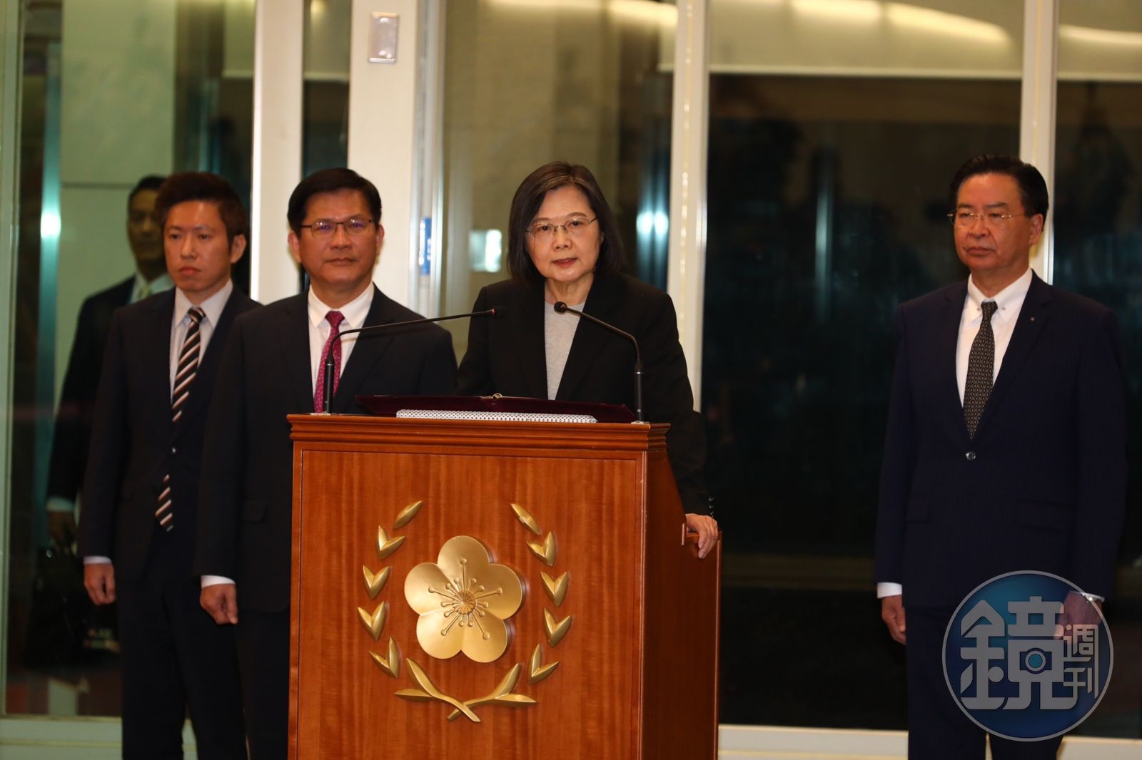 蔡英文總統晚間抵台後對國人發表談話,她首先感謝一起出訪的訪團成員、工作夥伴、媒體朋友以及華航機組成員,共同圓滿完成這次任務。她也感謝海外打拚的僑胞以及在世界各地駐館外交夥伴,因為大家的努力,才會有這次的成果。此外還有行政團隊和國安團隊在台灣顧好家園,維持政務的順利運作,讓訪團能安心拚外交。