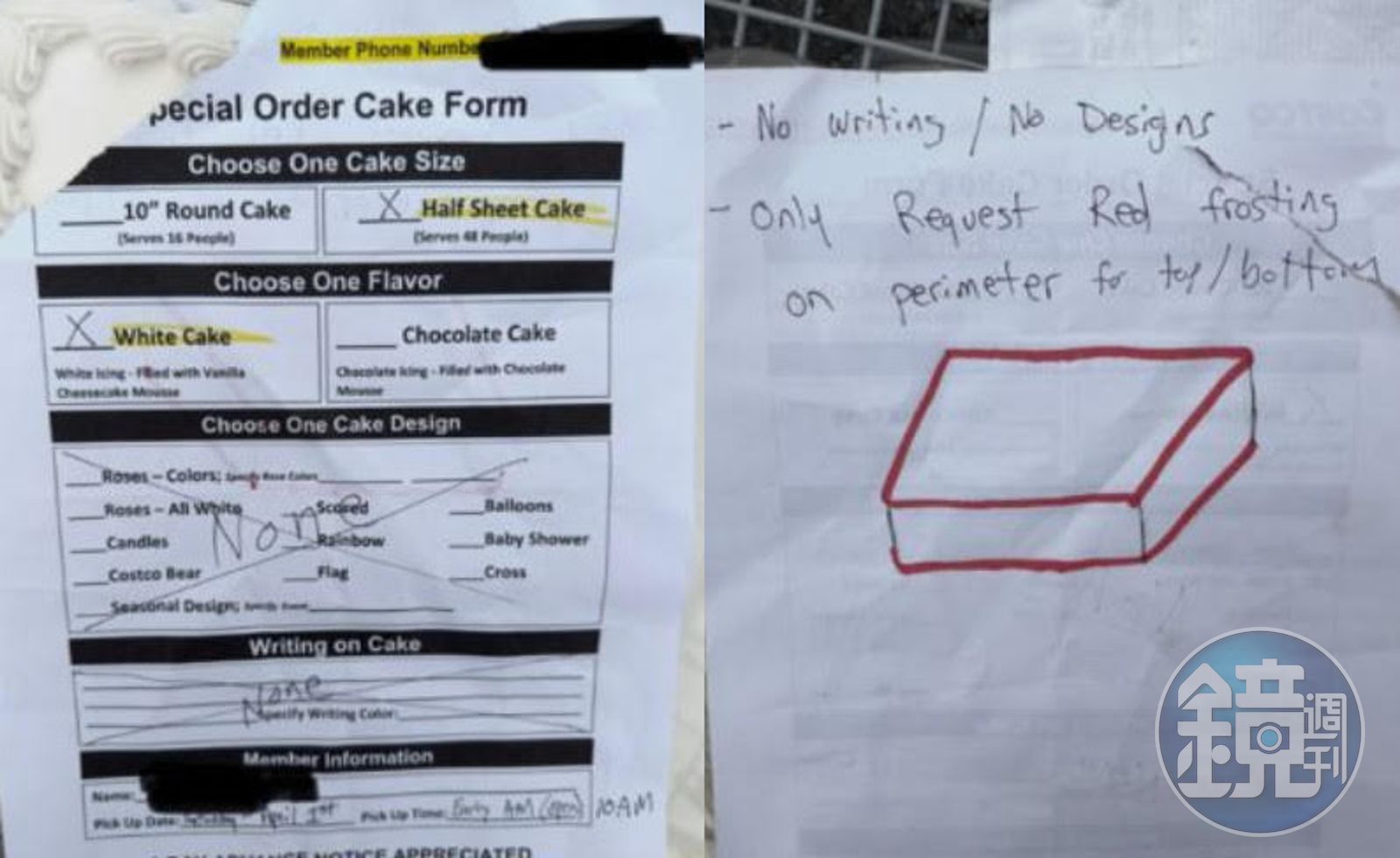 美國知名賣場好市多提供客製化生日蛋糕服務,讓顧客可以自行挑選口味、圖案或字句。一名網友為了避免溝通失誤,填寫需求單時相當細心,不僅在單子上將不需要的部分打叉叉,還補畫了蛋糕示意圖,強調只需要在蛋糕頂部和底部塗上紅色糖霜,不需要任何題字或設計。然而當他看到成品卻十分崩潰,分享到網路,一票網友捧腹大笑盛讚「簡直一模一樣!」