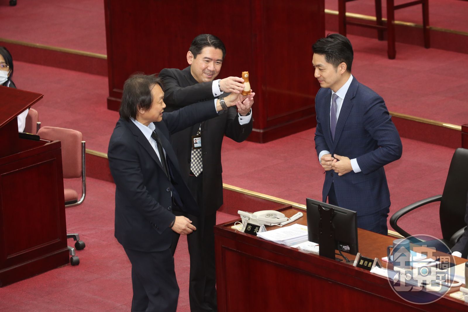 而王世堅的舉動,也弄得現場議員們哈哈大笑,連議長戴錫欽都忍不住露齒燦笑,更有人大喊王世堅名字替其加油。