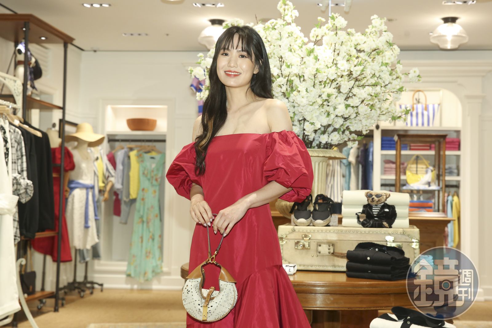 引進禮服與正裝系列的Polo Ralph Lauren首間女裝概念店空間約27坪。(Ralph Lauren提供)對於自己一身莓果色的洋裝look,孫盛希笑言,「一開始我也疑惑,我能消化整身莓果色的衣服嗎?沒想到穿起來很修身,很有在海邊派對的感覺,這洋裝好適合度假。」