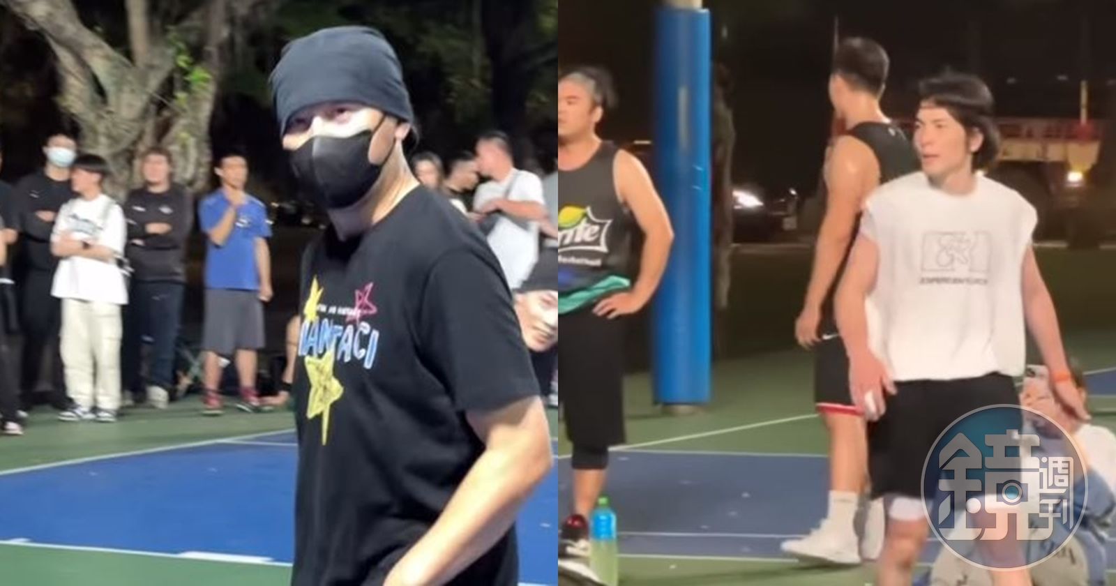 陳建州昨晚發布IG限時動態,拍下周杰倫、蕭敬騰在街頭球場與人3對3鬥牛的畫面,周杰倫雖然戴黑色頭巾、黑色口罩包緊緊,但還是被民眾認了出來,周邊圍觀群眾紛紛拿起手機拍攝,且似乎有「越夜越多人」的趨勢,由於當時已是深夜11時,還有這麼多人在球場打球,讓致力於推廣籃球的陳建州表示「很棒!」