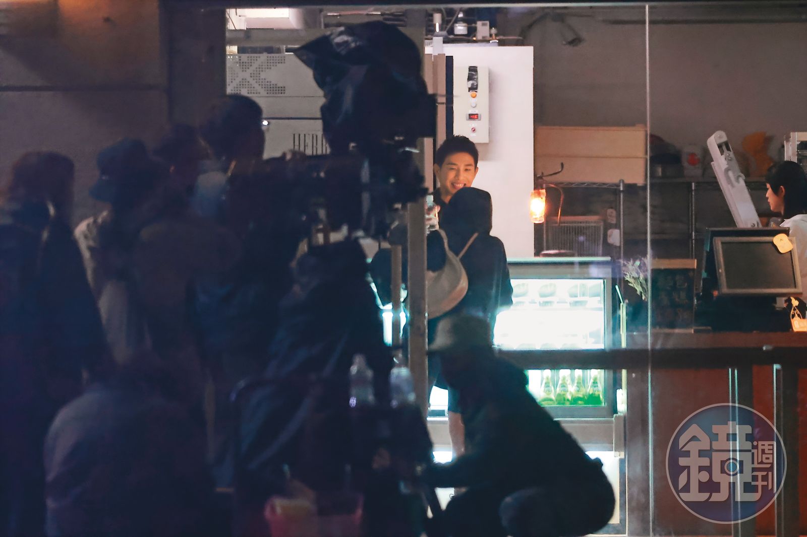 4月1日中午12點多,本刊在新北市林口一家麵包店前,見到劇組正在搭景,沒多久就看到工作人員撐著傘迎接姚以緹和劉奕兒,並展開拍攝。晚上8點半左右,仍是同個麵包店場景,但演員換成張立昂和劉奕兒對戲,這部戲是張立昂大病後首次復工,前一陣子他還二度確診,住院三天,可說相當倒楣。