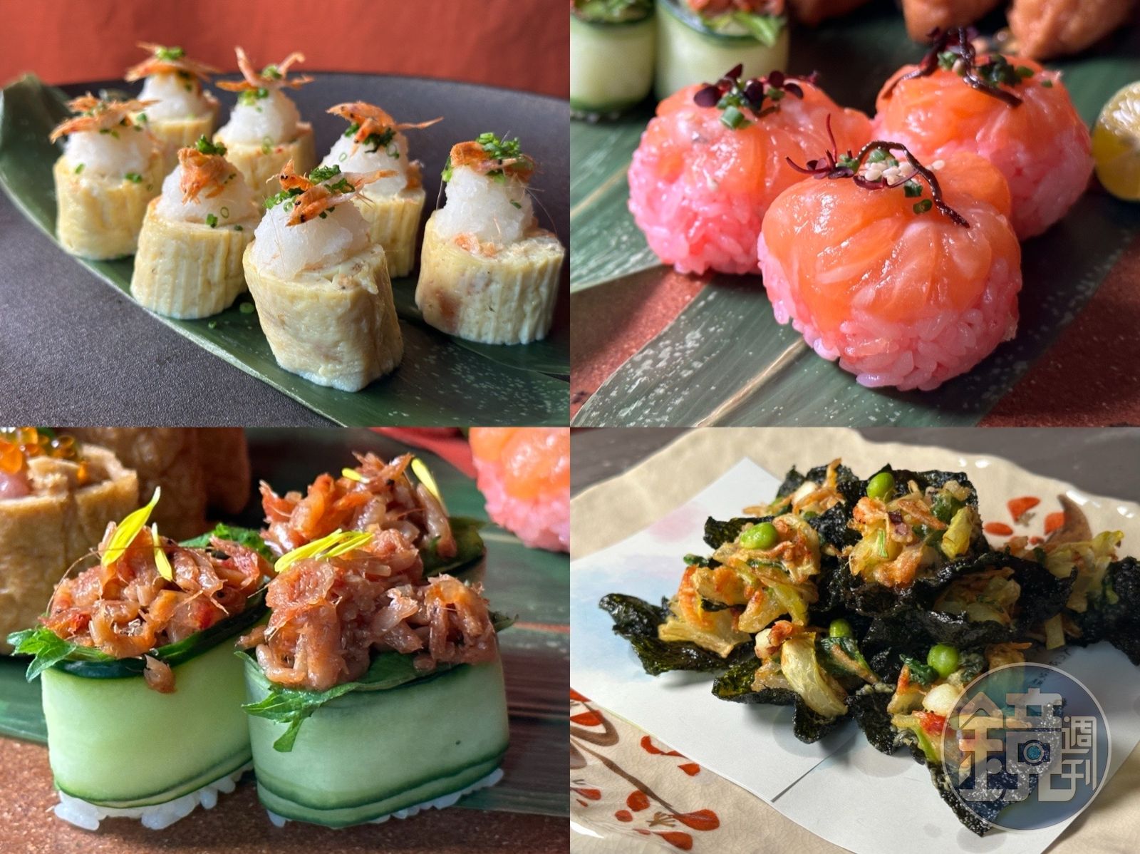 4月主打星就是櫻花蝦。高國智特地挑選龜山島海域產的生鮮櫻花蝦,每公斤要價7、800元,與乾燥蝦最大的差異,除了無刺口感,細細咀嚼還能嘗到蝦肉的甜美。無論是放上玉子燒、做成軍艦壽司,還是炸成蔬菜揚物,都有畫龍點睛、拉提鮮味的效果。