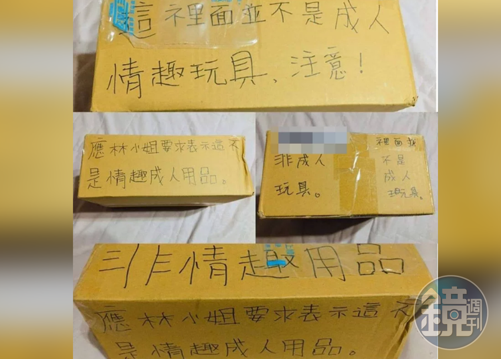 這個網友在臉書社團「爆廢公社二館」上貼出了一張照片,照片中可以看到五個紙箱上都貼上了類似的字樣:「這裡面並不是成人情趣玩具,注意」、「應林小姐要求表示這不是情趣用品」、「非成人玩具」、「非情趣用品」、「裡面不是成人玩具」等等。這個貼心的賣家以一種幽默詼諧的方式,幫助顧客保護隱私,讓人不禁稱讚他為「神一般的賣家」。