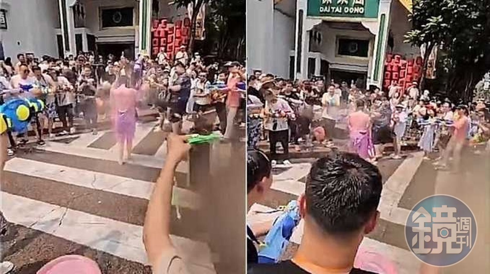 根據網路瘋傳影片,有一名女子開著騎車經過潑水人群,卻被「輪番攻擊」潑水,全身濕透,甚至一度視線模糊、重心不穩,連人帶車跌倒在地;還有一名穿著雨衣、拿水槍的女子,被「圍攻」集體潑水,期間還有男子上前撕扯她的雨衣;此外,還有男性拿水槍朝女性私密處狂噴。