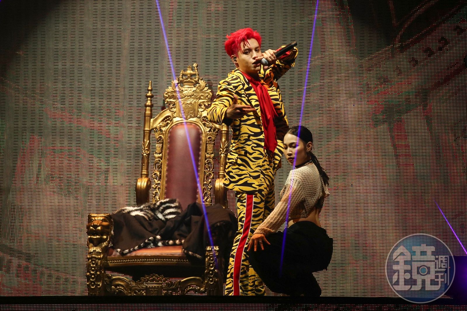 李哲言坐在國王椅上,穿著一身張揚浮誇的虎紋西裝,披上黑白相間皮草大衣,霸氣登場!他大秀饒舌功力,強烈的節奏感讓觀眾震撼全場,並起身與2位女舞者一來一往性感互動,突破Ozone最大尺度,畫面火辣無比,整場演出仿佛讓人置身一場午夜派對,讓粉絲驚呼連連,連其他成員都忍不住問他:「剛剛那2位女舞是怎麼回事?」調皮的哲言表示在原本的想像中,應該要一次與8位女舞者熱舞,最後只剩下2個,打趣笑說:「看來是錢塞得不夠多。」逗樂全場觀眾。