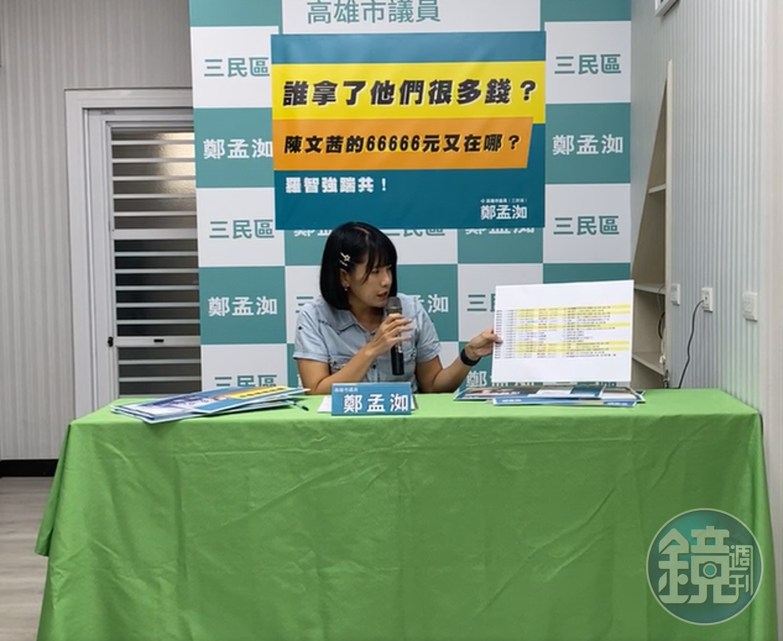 鄭孟洳表示,首先,去年5月14日,羅智強在臉書粉專說,他收到來自陳文茜的捐款,隨即再發一文,聲稱是轉述陳文茜告訴她捐款的理由。但羅的說法後來改成:「而文茜姐也很溫暖的說,等你政治獻金帳號設立的時候,我會捐66666元當作祝福」。於是,陳文茜從收到的第一筆捐款人,成為羅智強筆下「第一個說要捐款給他的人」,這筆捐款儼然成為空頭支票。