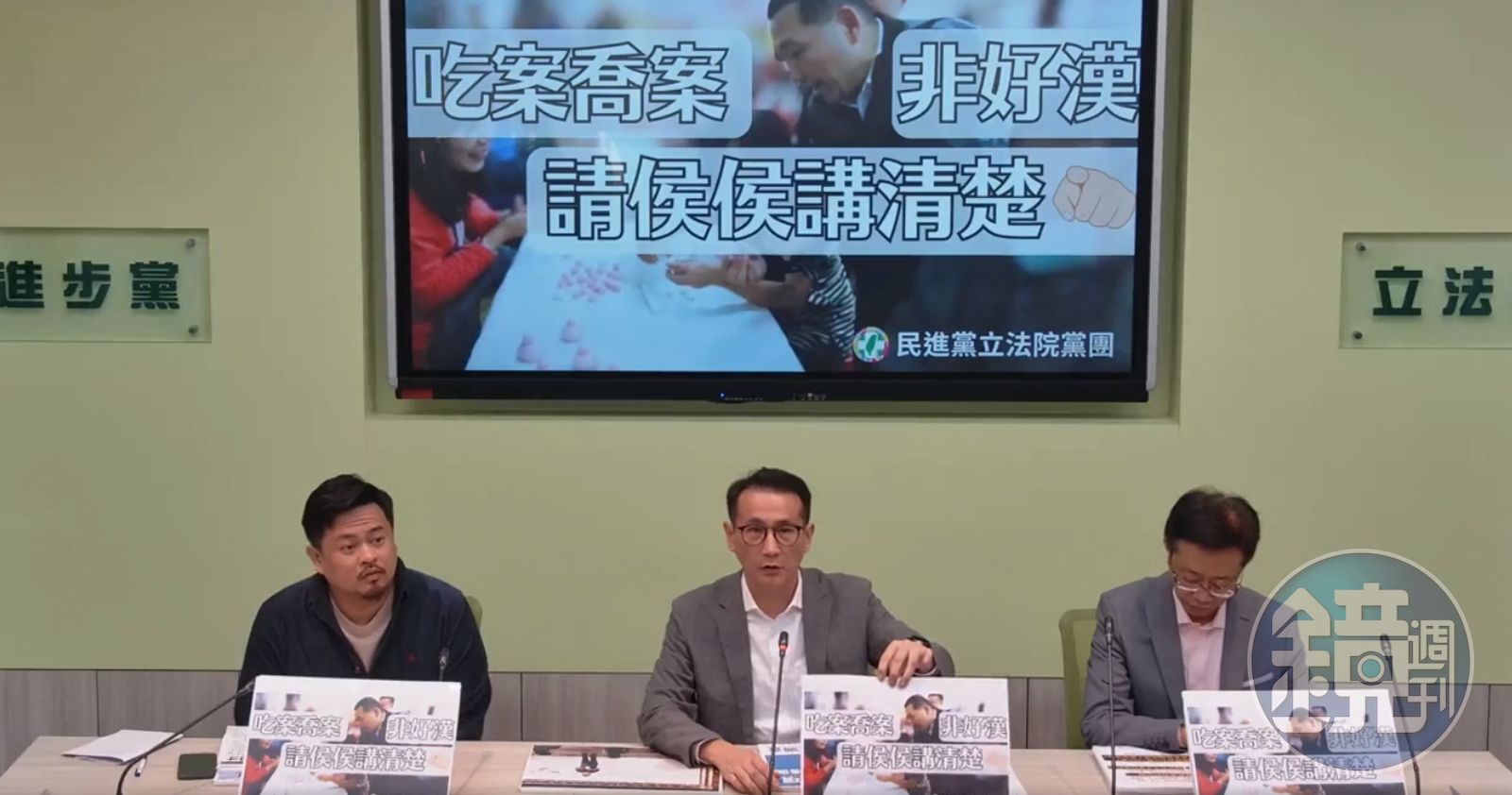 他們提到,侯友宜過去在面對病逝2歲童恩恩的事件是「吃案」,現在又被爆出「喬案」,除涉及違反《選罷法》,直接在新北市府內喬黨的人事也是公器私用,他們要求自稱「漢子」的侯友宜,應該出來「侯侯講清楚」,不要再像面對恩恩案一樣逃避、卸責,要求侯友宜主動說明清楚,同時更喊話檢調應該介入調查。