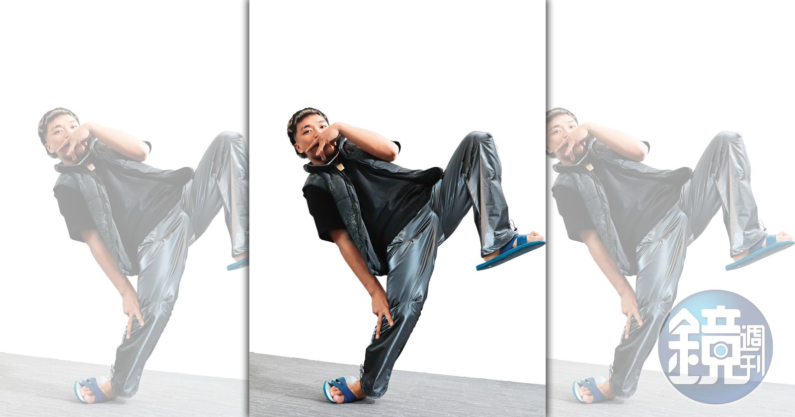整季比賽阿跨面幾乎都是黑色系打扮,他說:「私下就愛穿黑色,覺得膚色看起來比較不會那麼黑,想要白一點,說不定比較帥!」而「阿跨面」名字的由來,也是為了帥,「高中參加街舞隊,喜歡邊淋雨邊跳舞,覺得自己像水行俠Aquaman,後來唱饒舌就改成中文『阿跨面』。」