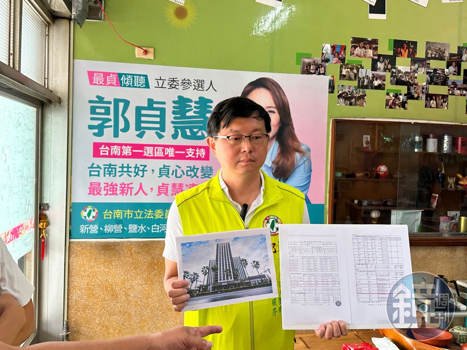 郭貞慧團隊指出,賴惠員在當選一任市議員之後,就購入有「台南帝寶」之稱的「耘非凡」豪宅,但對照賴惠員在監察院的財產申報資料,2016年所購入豪宅的金額,在內政部實價登錄上「完全找不到」這筆資料,遍查同年度同建案的實價登錄資料,一戶至少在2800萬以上甚至5、6千萬。質疑賴惠員為什麼可以用遠低於市價的行情買到「耘非凡」豪宅?