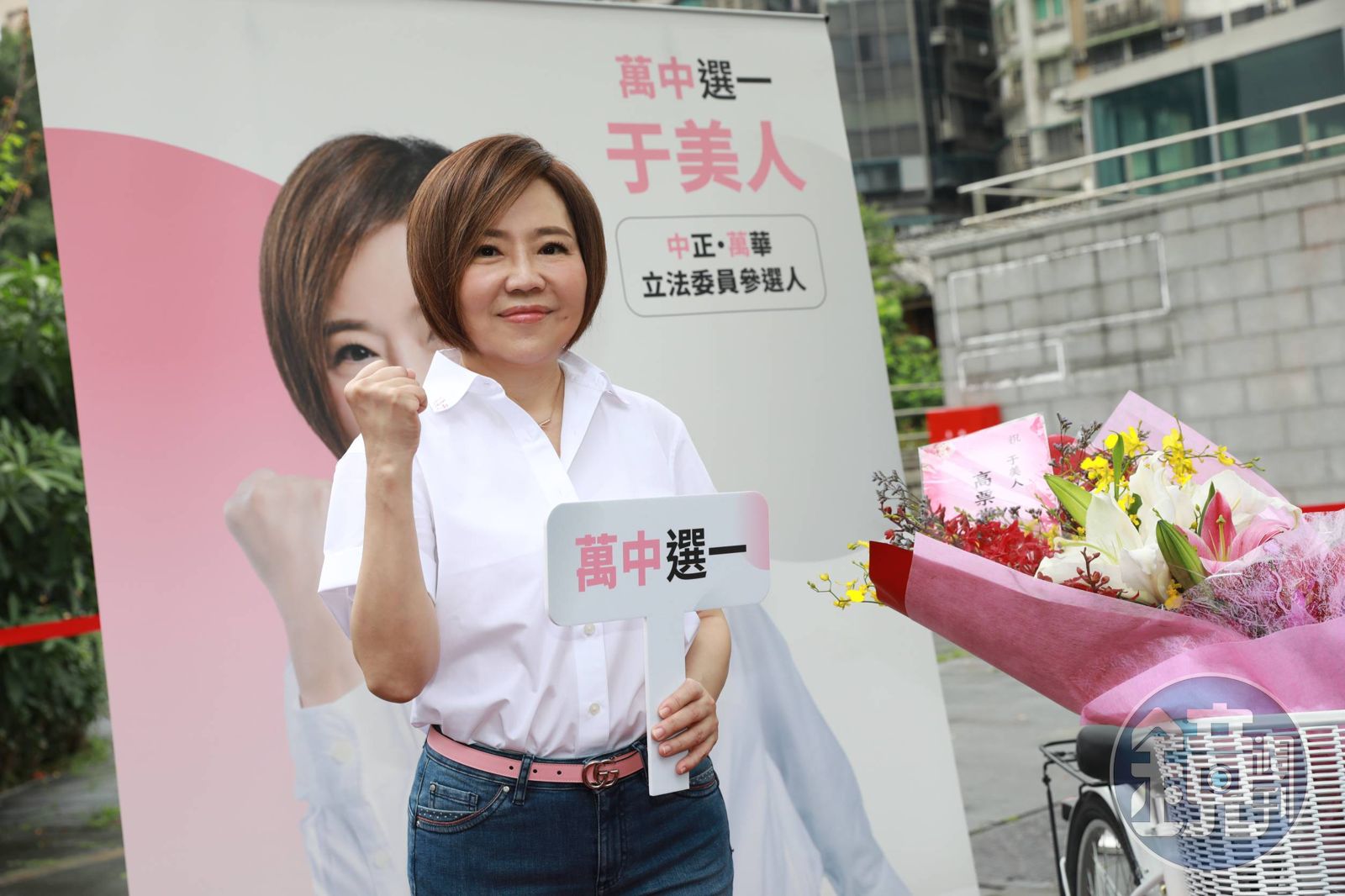 于美人今早於西門西本願寺前召開說明會,她表示要將藍色還給穹蒼、紅色還給玫瑰、綠色還給青草、白色還給白雲,國會還給人民,將以「萬中選一黨」參選第五選區立法委員。