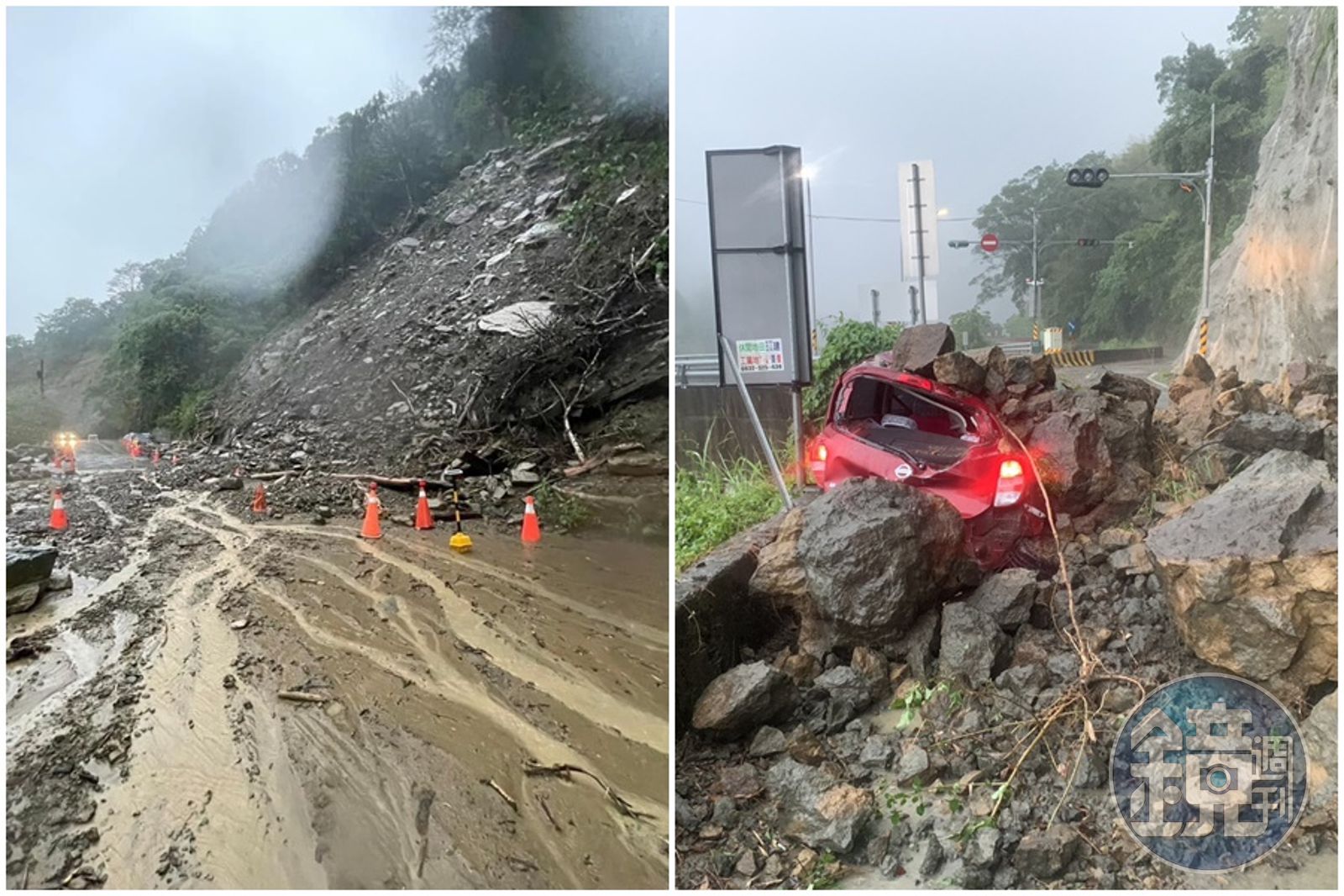 苗栗豪大雨傳災情「落石壓扁小轎車」 南庄鄉東河村今停班課