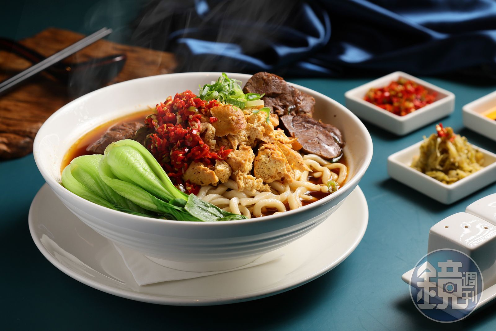 主廚王銘嘉回憶,研發這款臭豆腐牛肉麵最具挑戰之處,是如何讓臭豆腐融入牛肉湯汁,在嘗試十多種臭豆腐後,終於找到現今這款帶有凍豆腐口感、7天慢工熟成的天然發酵鹵水臭豆腐,即便放進牛肉湯裡加熱,仍能保有自身獨有的臭香味,且與牛肉麵互不搶戲。主廚還特別挑選手工拉麵,不只較能吸附湯汁,又不容易軟爛,非常Q彈有嚼勁。