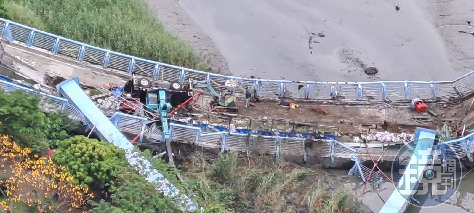 位於新北市五股區成泰路四段22巷旁的「觀音坑溪橋」是自行車道,為新北市政府高灘地工程管理處管轄,目前正在施工中,今日下午有當地民眾在臉書社團「我是五股人」發文,表示聽到2聲爆炸聲,原以為是地震,到頂樓一看才發現是橋斷了,「看到橋上好像躺一人,聽到說藍色拱橋下好像有2人...希望平安」。