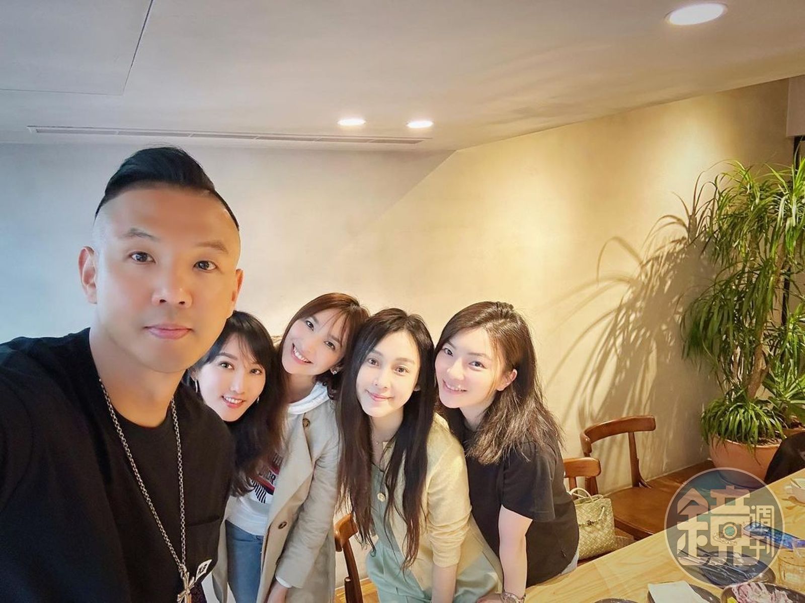 吳佩慈(左2)狀態極佳,完全看不出是4個小孩的媽。(翻攝自陳建州IG)黑人陳建州昨(22日)在IG分享吳佩慈近日回台與閨密們聚會的合照,包括黑范夫妻、B.A.D成員Danny老婆楊晴瑄等人。