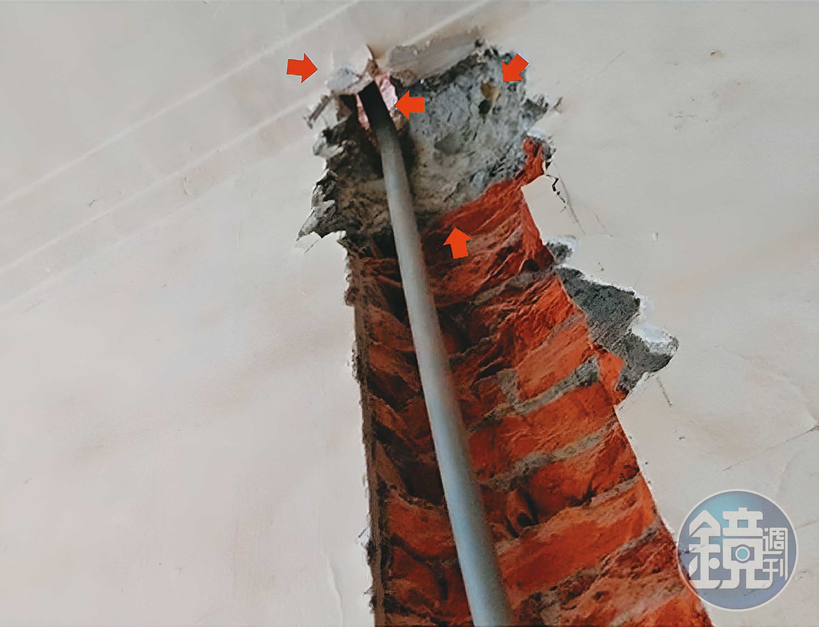 陳姓屋主指控,在對方動工不到1個月,家中就壁裂60多處,櫃中的杯子等物品也被震落毀損,此外,噪音擾人,讓已逾7旬的他與妻子難以忍受,且施工時塵土飛揚,他為了清理灰塵還從鋁梯摔落受傷,至今仍得復健。陳姓鄰居摔傷後,蕭君平的妻子簽下切結書,允諾賠償陳家損失。