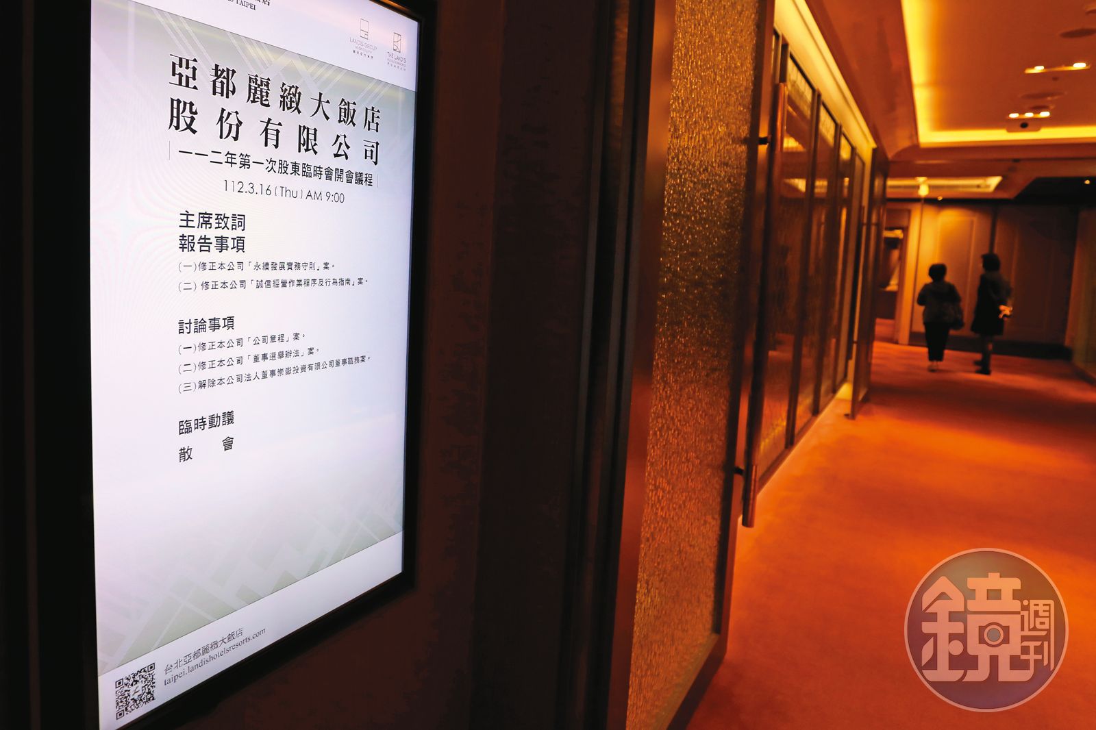 果不其然,3月16日亞都麗緻召開股臨會,周永銘一派挾股權優勢,以迅雷不及掩耳之勢,成功解任林家代表的董事,同時決議通過修改公司章程,縮減董事會席次下限,從原本的7至9席,改為5至9席,藉此削減對手的影響力。