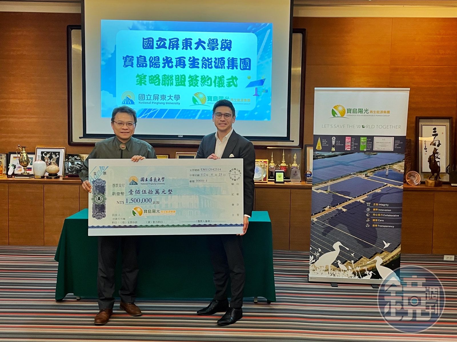 寶島陽光再生能源在屏東已併網的光電案場總裝置容量達到51MW,至今更陸續投入了20億以上資金,堪稱屏東投資金額最高的外商企業,2023年更成立屏東辦公室,擴大案場投資與加強維運管理。執行長卓國良表示,這次贊助獎學金計畫對寶島陽光而言是重要的里程碑,屏東大學是我們承攬教育部標案的案場之一,過去也曾向屏東大學承租推廣中心,做為南部臨時辦公室。在台灣能源轉型的路上,寶島陽光很榮幸與屏東大學一起攜手前行。