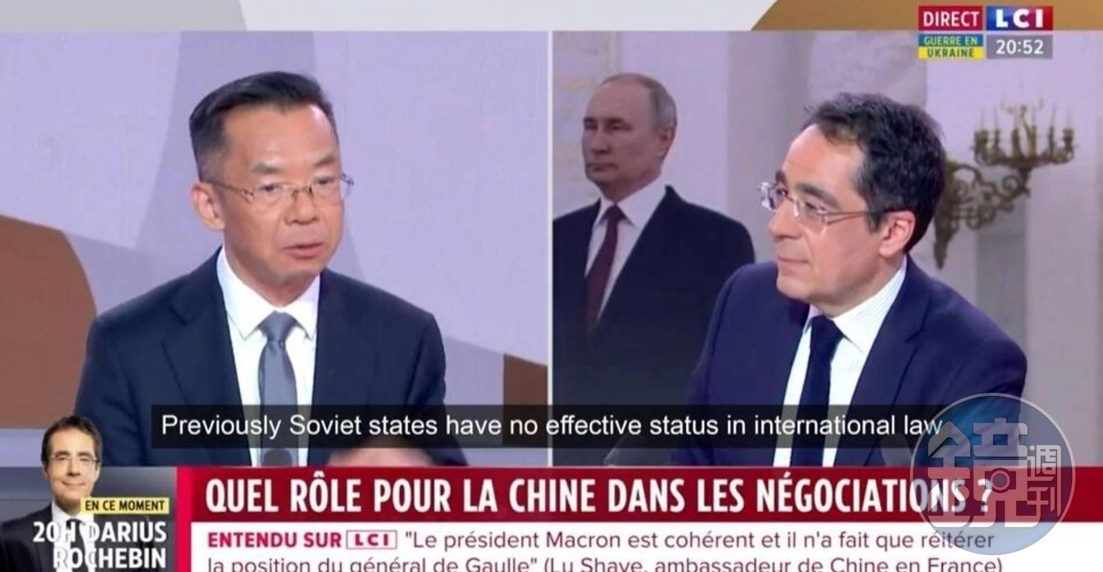 中國駐法大使盧沙野接受電視專訪時,主持人問盧沙野「克里米亞屬於烏克蘭嗎?」並進一步說明「根據國際法,克里米亞屬於烏克蘭」,盧沙野則回答「根據國際法,這些前蘇聯國家不是實質主權國家」,因為沒有國際協議具體化他們的主權。