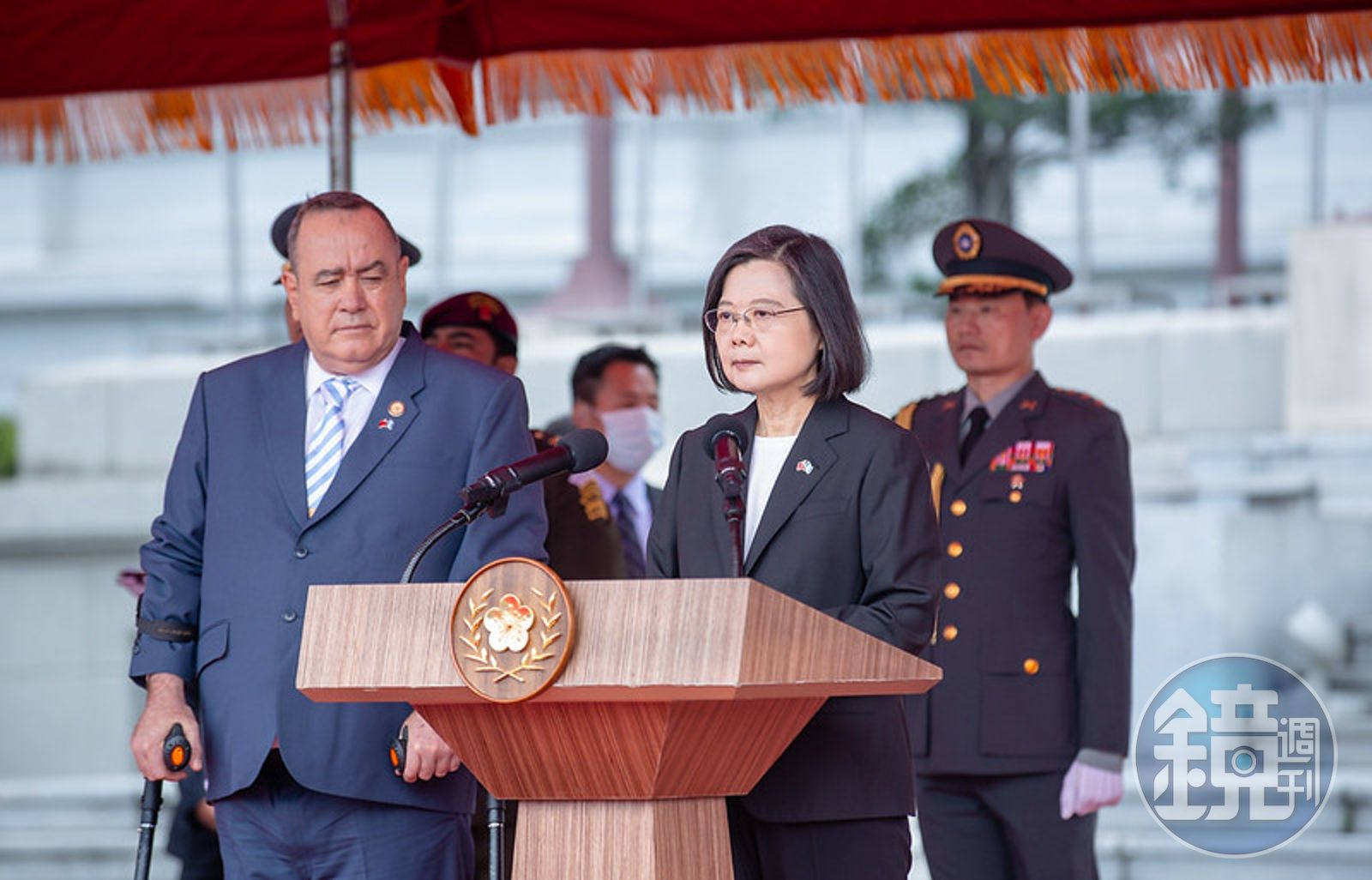蔡英文致詞時,首先代表中華民國政府及人民,向賈麥岱及訪賓表達最誠摯的歡迎。她提到,上一次賈麥岱訪問台灣是在2019年10月。當時,賈麥岱從大選勝出還不到兩個月,就以總統當選人的身分來訪。在這個月初,她訪問瓜地馬拉的時,賈麥岱也表示,很期待來到台灣進行國是訪問。今天很高興以隆重的軍禮歡迎賈麥岱總統。