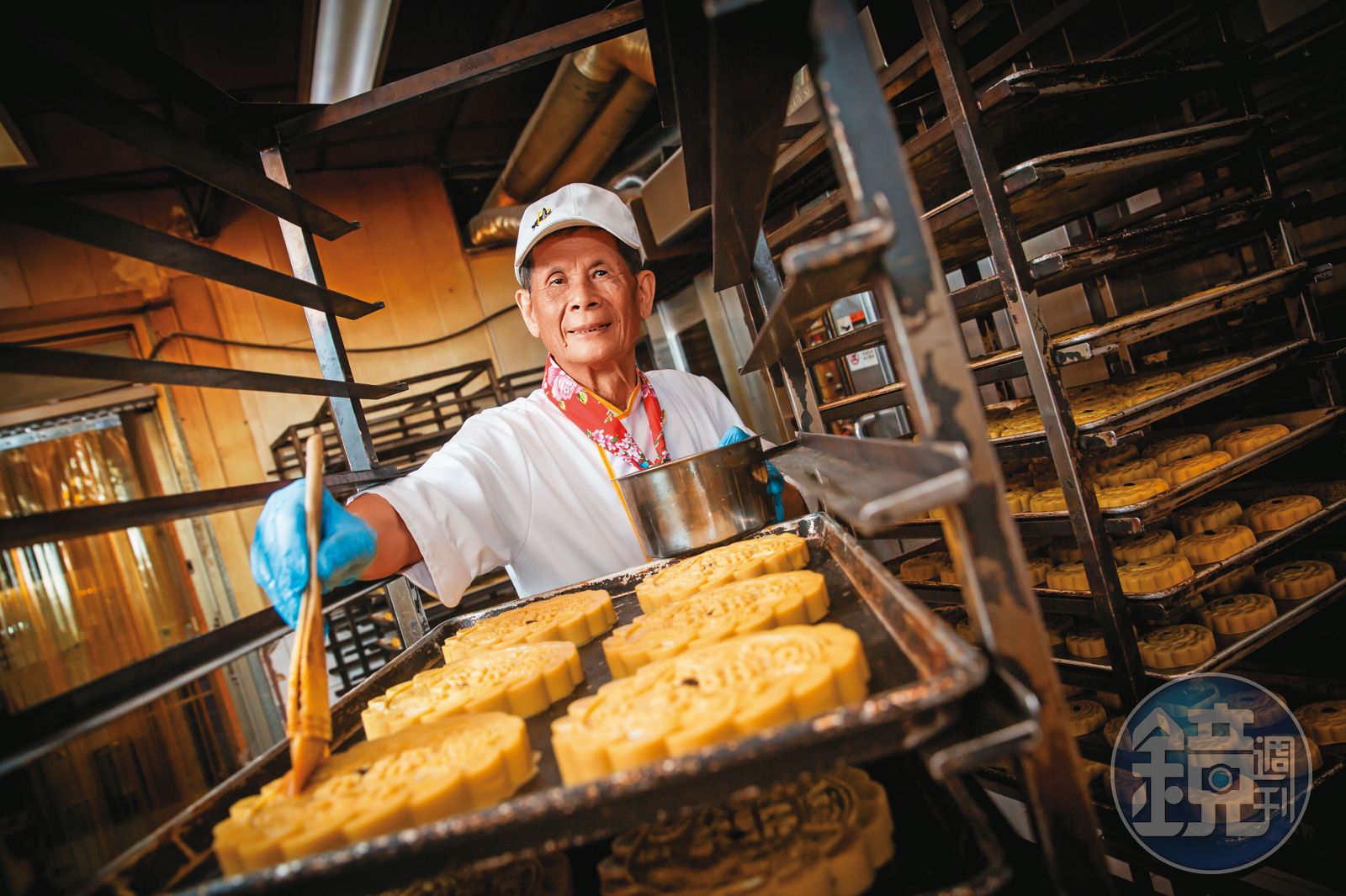 江金榮從小住在沒水、沒電的茅草牛寮,13歲國小一畢業就決心要學手藝,先在麵包店當學徒。「每天要凌晨一點起床,因為當時沒有機器、麵包都是手工做的。」永安招牌豆沙核桃大餅裡的豆沙,便是在那個時候打下熬製餡料的基礎。