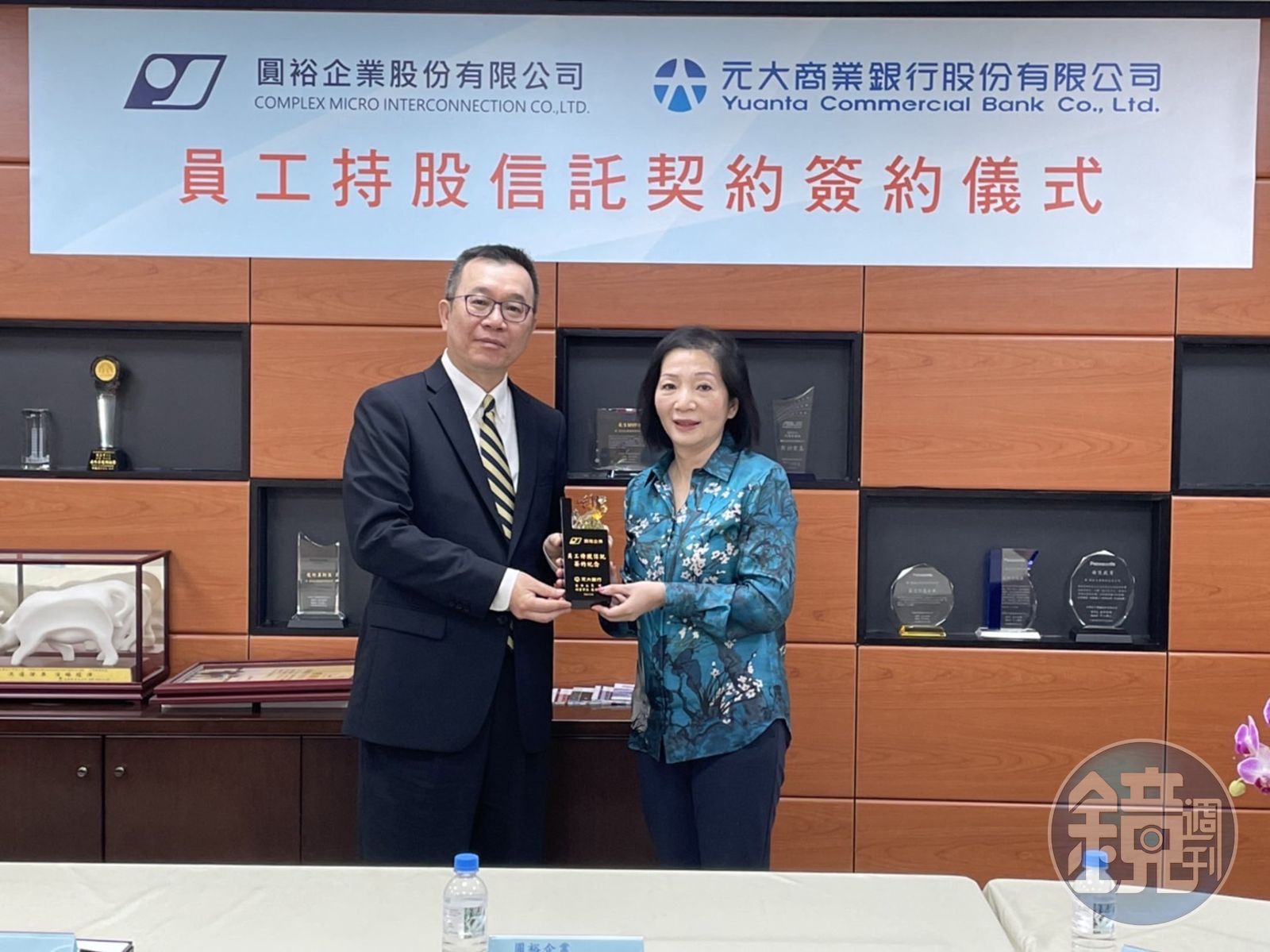 圓裕企業表示,公司股票掛牌上市後,元大銀行持續關心及建議公司應在追求股東利潤外,同時兼顧員工福利,從而促成本次「員工持股信託」案得以順利推動。圓裕企業員工已組成員工持股會,由員工授權持股會代表人與元大銀行簽訂員工持股信託契約,約定每月自員工薪資提撥自提金,加上公司所提撥獎勵金,共同交付元大銀行信託管理,為員工、股東及公司共創三贏。