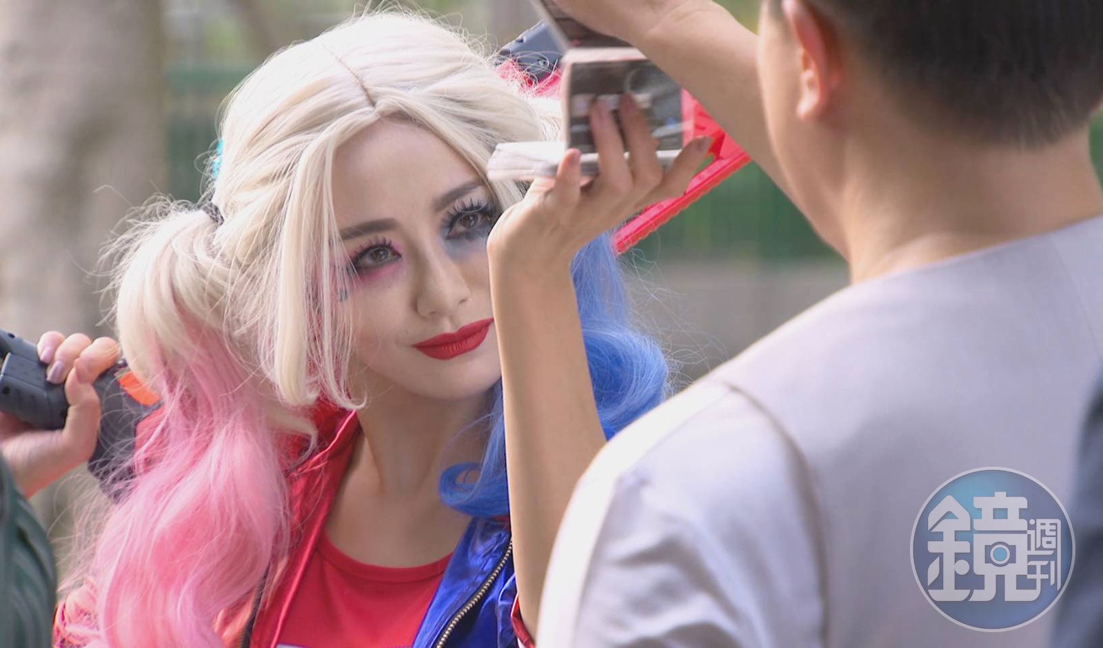 茵芙挑戰美艷新造型,和平常甜美可愛的模樣差異極大,梳化時大家很期待成果,最後果然令人驚艷,她表示:「感覺自己很帥!」日前她在劇中假扮高中生,現場工作人員就許願想看雙馬尾造型,這次的小丑女就是雙馬尾,茵芙甜笑表示:「看吧,是不是有求必應!」 工作人員反而笑說口味太重了。
