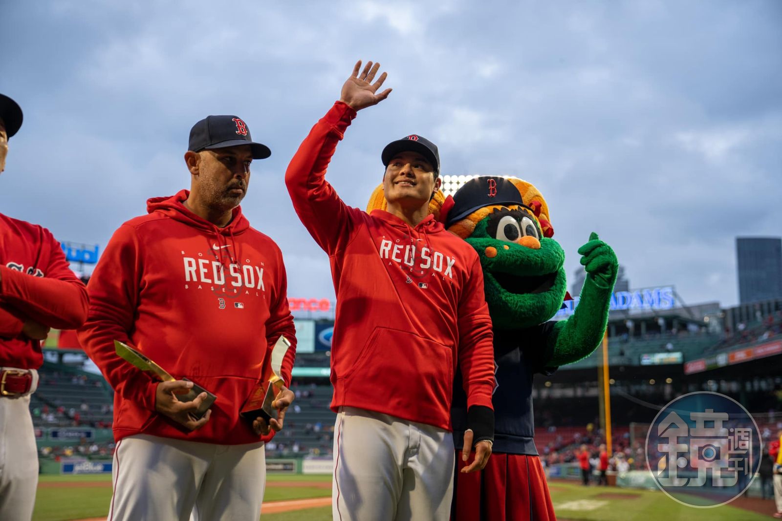 本屆經典賽中,張育成獲得A組MVP,並獲選明星隊最佳一壘手;吉田正尚則是獲選最佳右外野手,還是打點王。今天紅襪在對藍鳥之戰的賽前表揚張育成、吉田正尚2位球員在經典賽的優異表現。