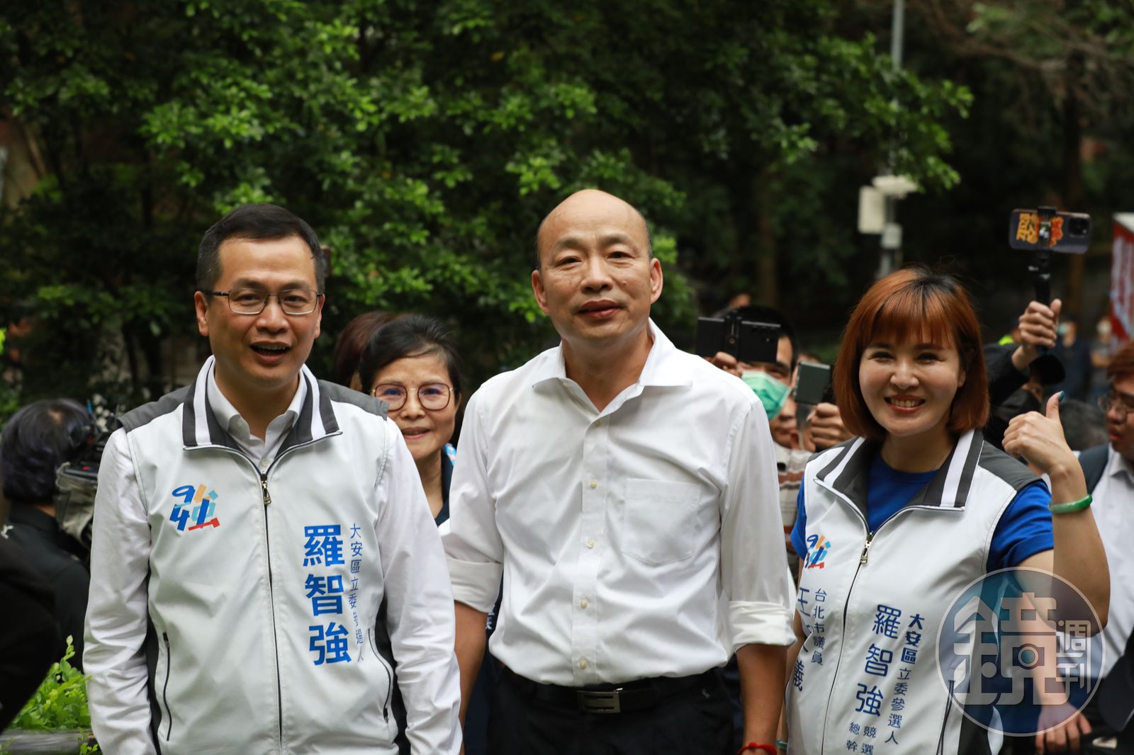 韓國瑜接著稱,未來立法委員一定要有足夠的智慧與勇氣,若沒有國際觀將不及格,還稱這幾年見到桃園、新竹一路興旺,台北市必須要加油。韓也表示,從大環境看國家,中環境看台北市,小環境看大安區,認為從三個架構看到羅智強就是不二人選。