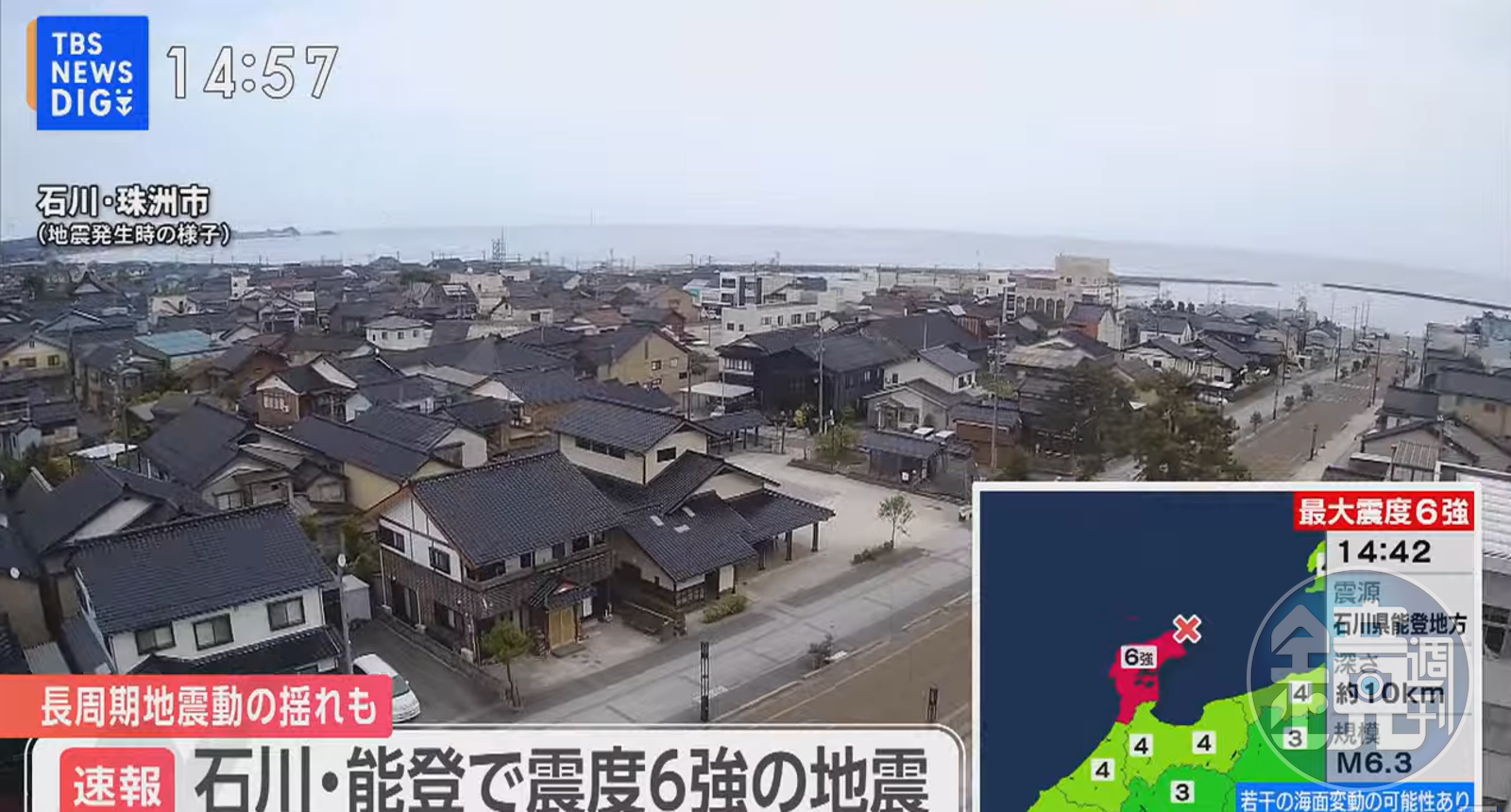 據日本氣象廳資訊,石川縣能登地區的震度高達6強,另外新潟縣部分地區、佐渡地區、富山縣西部、石川縣加賀地區等都偵測到震度4級。另外從監視器畫面可見,地震發生瞬間能感受到強烈搖晃。 另據《NHK》報導,石川縣珠洲市消防署已接獲2起市內建築物倒塌的通報,詳細狀況仍有待進一步釐清。