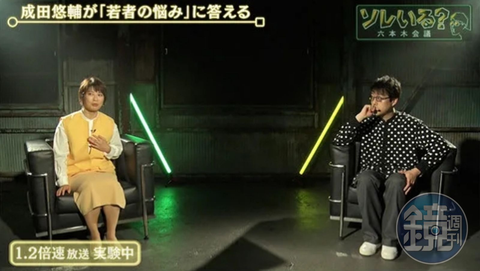 《Orion News》報導,由耶魯大學助理教授成田悠輔和朝日電視台主播久保田直子主持的深夜節目「ソレいる?六本木会議」,期間回應對未來感到擔憂的年輕人的煩惱,不過當集卻直接用1.2倍速在電視上播放,只見兩位主持人像平常一樣坐著聊天,但說話速度卻快到難以理解。