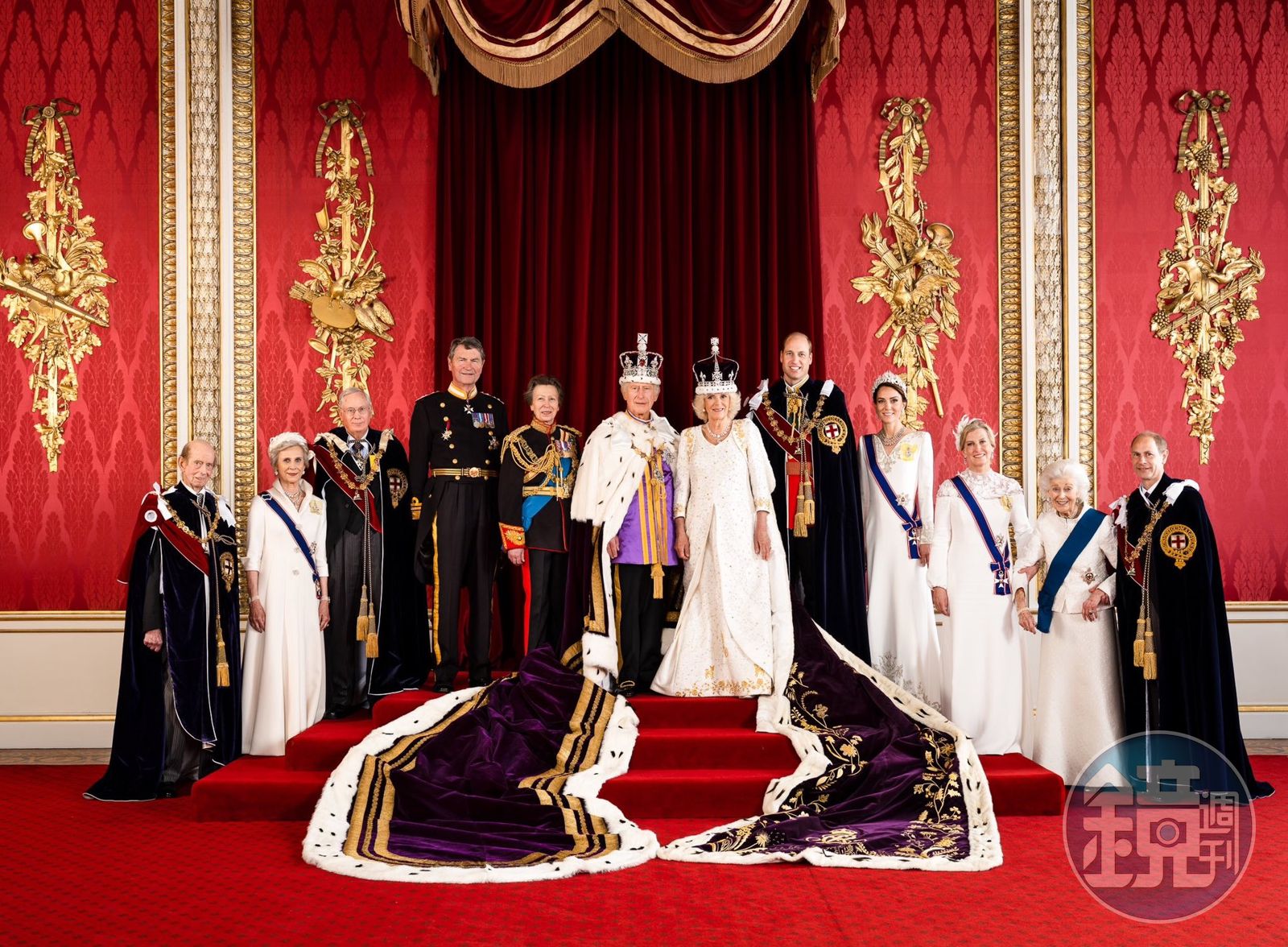 白金漢宮昨發布4張加冕禮官方肖像,由英國王室服務超過20年的御用攝影師雨果伯南德(Hugo Burnand)拍攝,拍攝時間是在加冕儀式後,地點在白金漢宮國事廳。