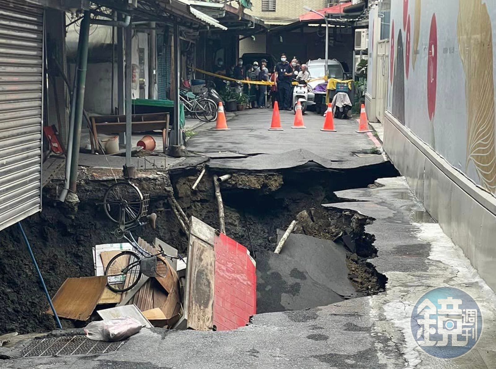台北市信義區崇德街60巷驚見3公尺大天坑。(翻攝自許淑華臉書)發布時間:2023.05.13 18:32 臺北時間
