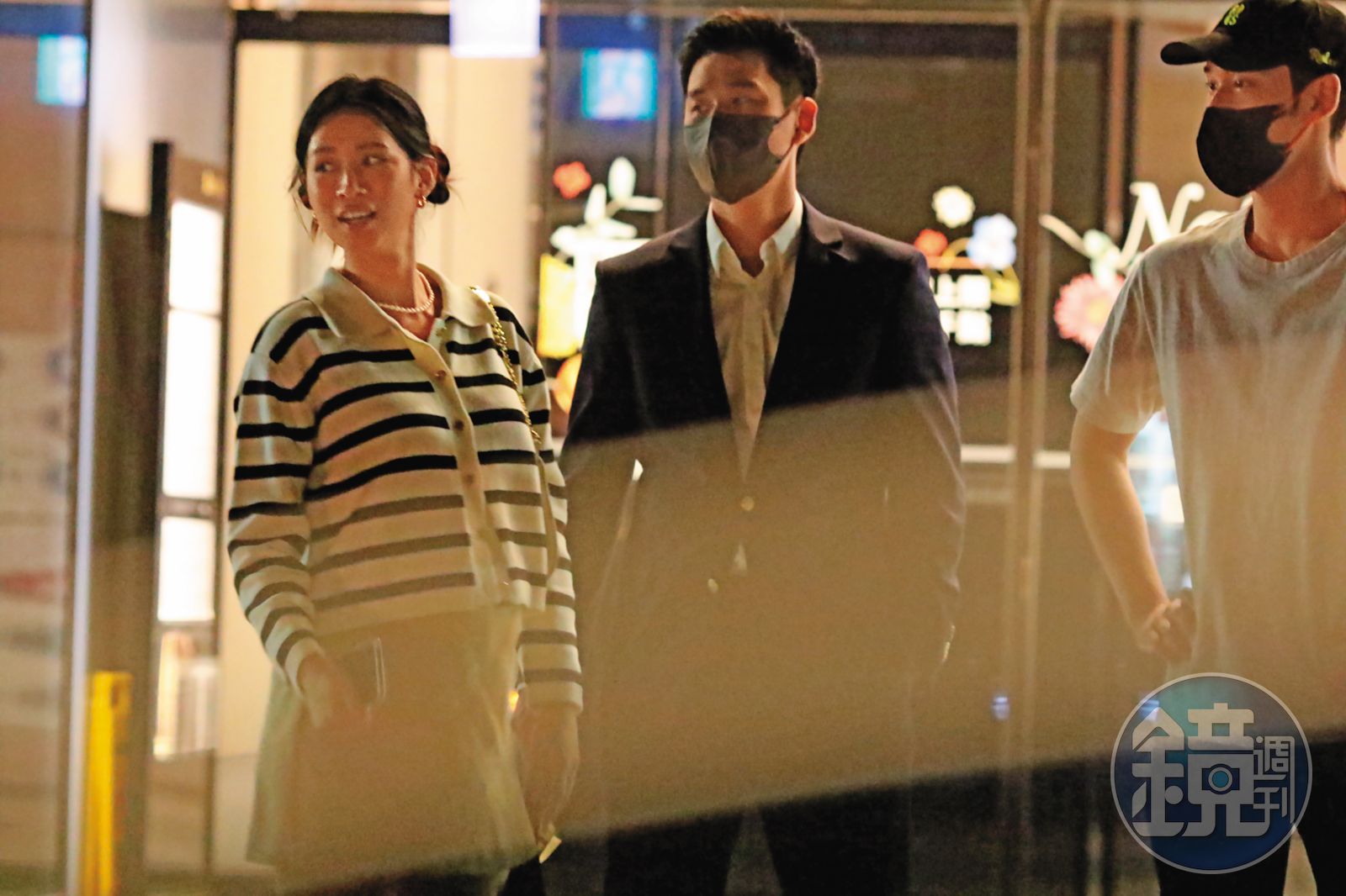 就在5月8日晚上將近10點,本刊目擊周興哲與趙岱新出現在台北市信義區百貨公司門口,趙岱新穿著橫條紋上衣及連身短裙,搭配白襪皮鞋,打扮輕鬆可愛,同行的還有周興哲的哥哥周予天及幾位朋友,一行人在門口短暫交流,隨即各自離開。