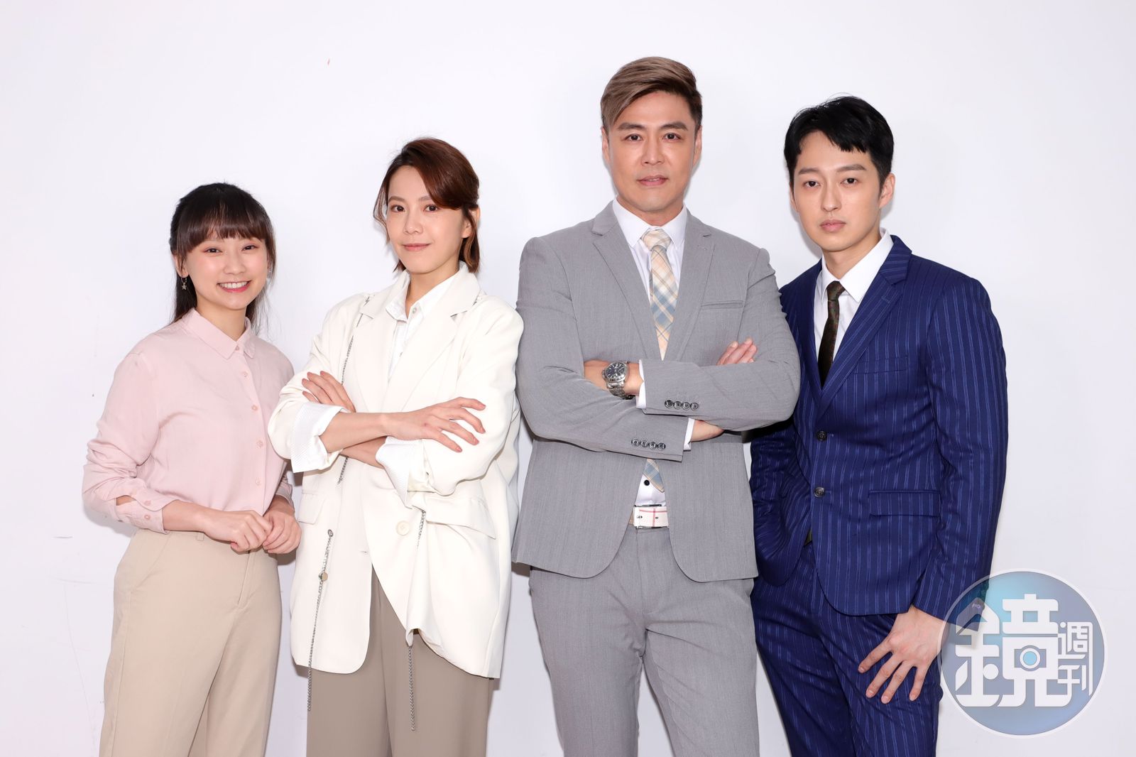 劉至翰(右二)、廖苡喬(左二)、于浩威(右一)、吳鈺萱(左一)加入8點檔《市井豪門》演出。(民視提供)發布時間:2023.05.15 22:41 臺北時間