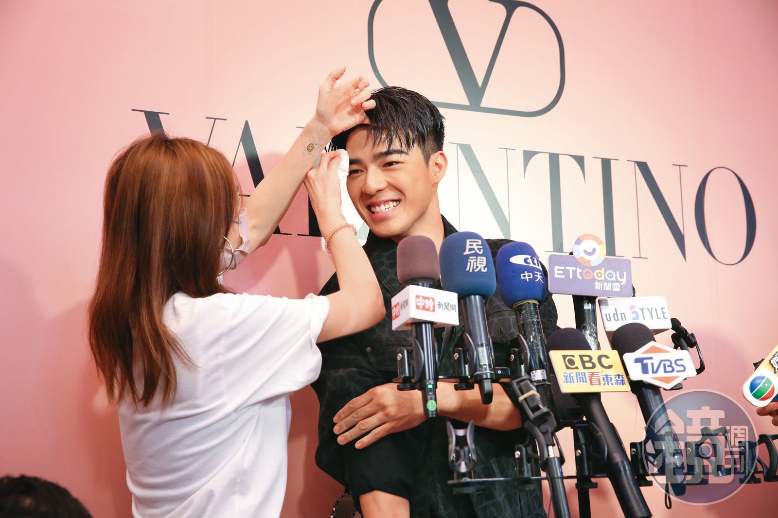陳昊森(右)在Valentino開幕直爆汗,名副其實「汁液型男」。(好想當那張衛生紙~)發布時間:2023.05.20 05:58 臺北時間